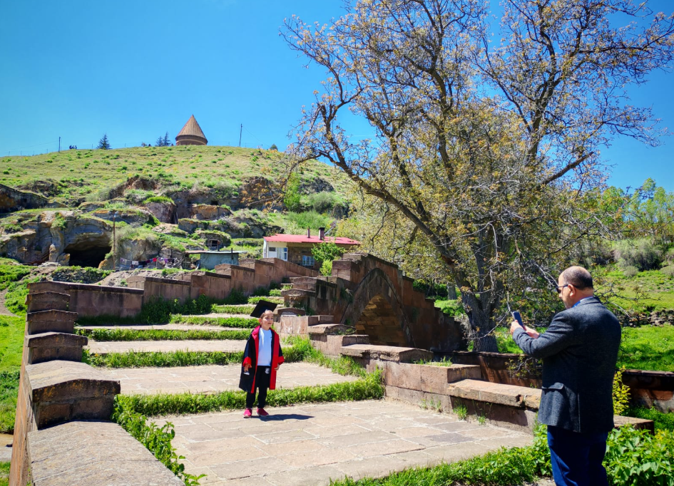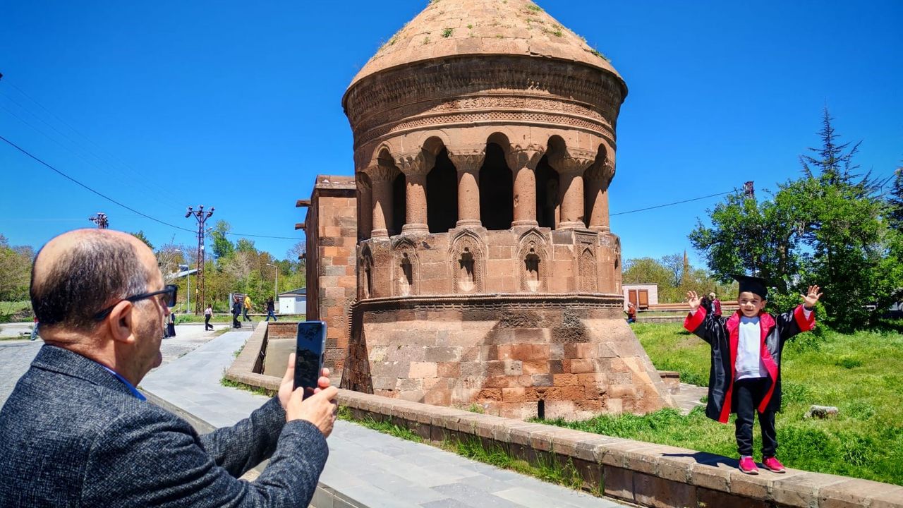 Ahlat'ın eşsiz tarihi dokusu, ailelerin çocuklarının bu özel gününü ölümsüzleştirmek için tercih ettiği adreslerin başında geliyor. Ebeveynler, minik mezunlarının tatil heyecanını ve okulla vedalaşma anlarını, Ahlat Selçuklu Mezarlığı, Emir Bayındır Kümbeti, Bayıdır köprüsü ve şelalesi gibi tarihi mekanların mistik atmosferinde fotoğraflarla anılarına kaydetmek istiyor. Bu sayede hem çocukların ilk mezuniyetleri kutlanıyor hem de Ahlat'ın zengin kültürel mirasıyla tanışmaları sağlanıyor.