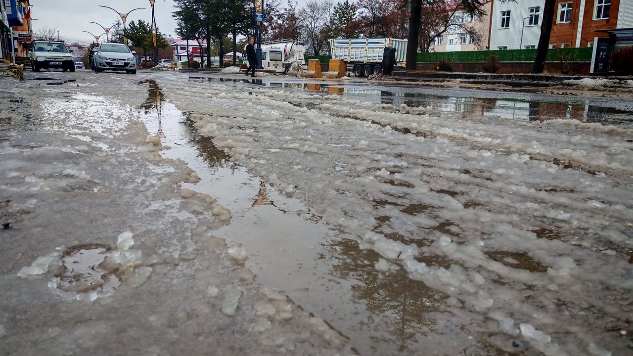 Bitlis’in Ahlat ilçesinde sabahın erken saatlerinde başlayan kar yağışı, kısa sürede karla karışık yağmura dönüştü. İlçe merkezinde hava sıcaklığının sıfırın üzerinde seyretmesi nedeniyle yağan kar hızla eridi. Özellikle ana caddelerde oluşan su birikintileri ve kaygan zemin, sürücülere zor anlar yaşattı. İşe gitmek için yola çıkan vatandaşlar, trafikte kontrollü ilerlemek zorunda kaldı.
