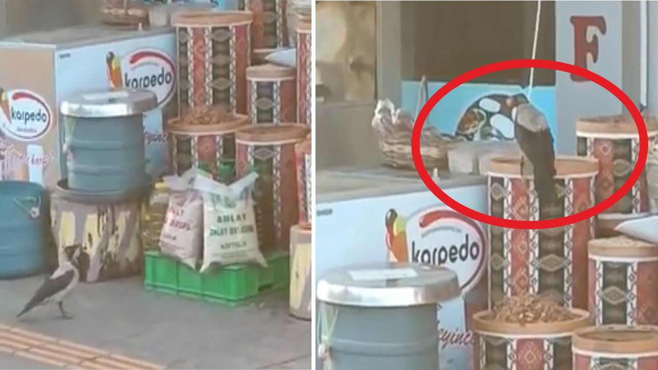 İlçede faaliyet gösteren “Ergezen Mandıra” isimli işyerinin önünde bulunan ceviz dolu küfeye her gün gelen karga, rahat tavırlarla ceviz alarak uzaklaşıyor. İşletme sahiplerinin cep telefonu ile kaydettiği görüntülerde, karganın adeta alışkanlık haline getirdiği bu davranışı hem şaşkınlık yarattı hem de izleyenlerin yüzünü güldürdü. Vatandaşlar, karganın ceviz çalarkenki özgüvenli hareketlerini ilginç ve eğlenceli bulduklarını ifade etti. İşletme sahipleri ise “Artık biz de alıştık, her gün gelip nasibini alıp gidiyor” diyerek durumu tebessümle karşıladıklarını söyledi.