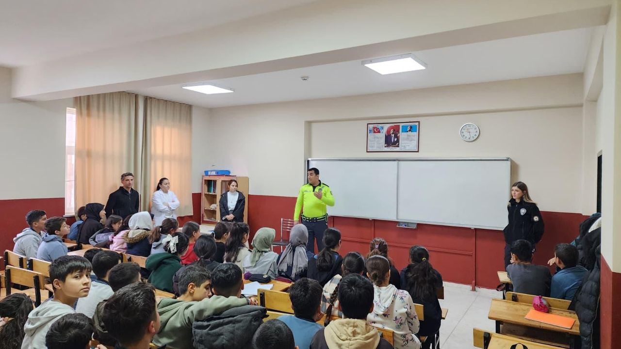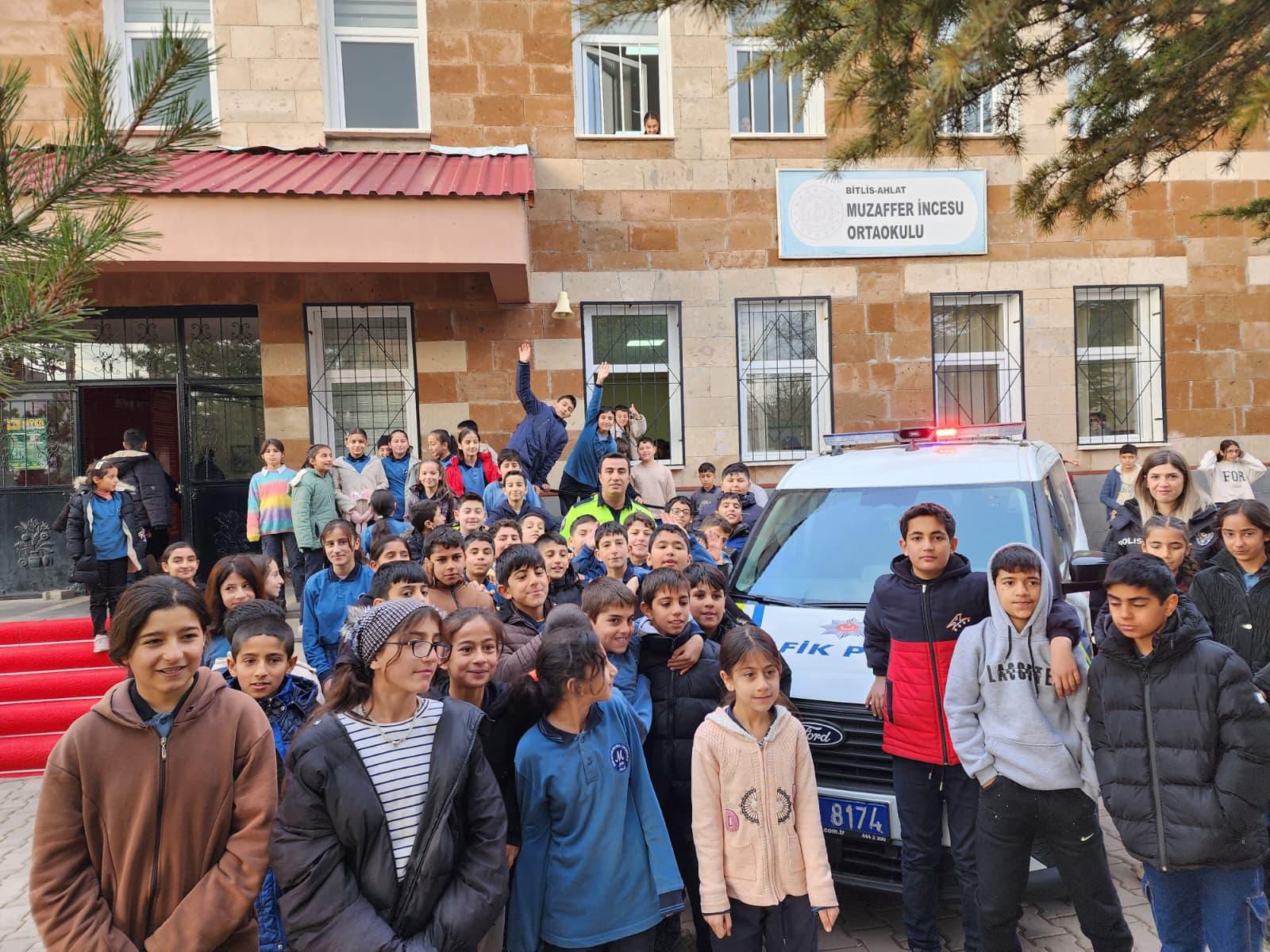 Ahlat İlçe Emniyet Müdürlüğü Trafik Denetleme Büro Amirliği ekipleri tarafından Trafik Güvenliği Eylem Planı kapsamında Muzaffer İncesu Ortaokulu’nda gerçekleştirilen seminerde, 110 öğrenci ve 5 eğitimciye trafik kuralları hakkında bilgilendirme yapıldı.