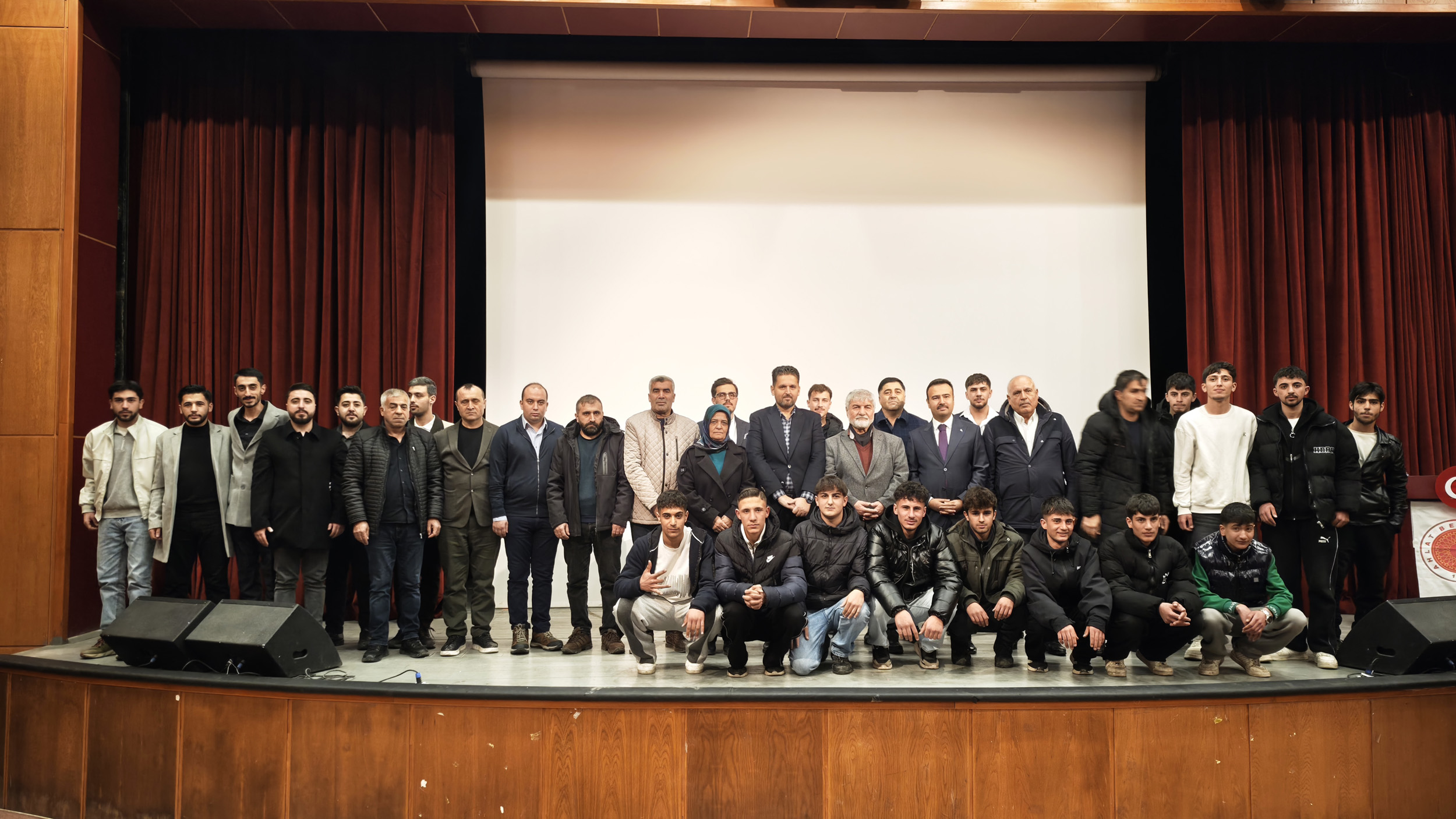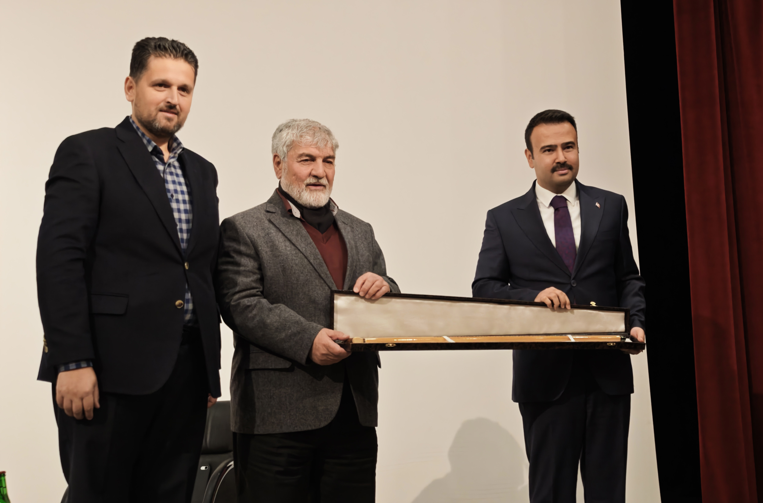 Söyleşi sonunda Ahlat Kaymakamı Batuhan Bingöl ve Ahlat Belediye Başkanı Yavuz Gülmez tarafından yönetmen Mesut Uçakan’a Ahlat bastonu hediye edilerek hatıra fotoğrafı çektirildi.