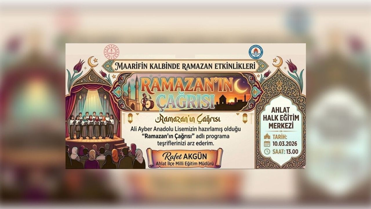 Ahlat Halk Eğitim Merkezi Konferans Salonu’nda yarın saat 13.00’te gerçekleştirilecek programda, gençlerin hazırladığı sahnelerde Ramazan ayının paylaşma, iyilik ve dayanışma ruhu etkileyici bir anlatımla aktarılacak.