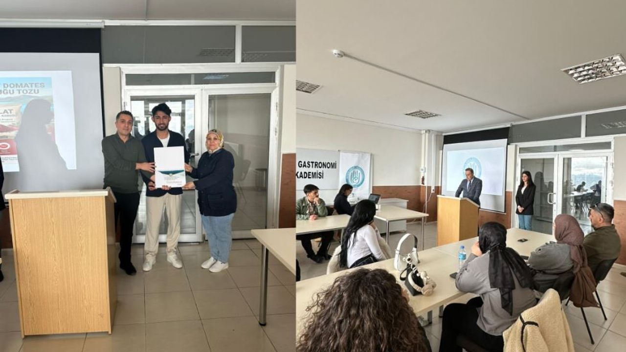 Gastronomi ve Mutfak Sanatları Bölümü 4. sınıf öğrencileri ise mutfakta israfı önlemenin yollarını ve sürdürülebilir uygulamaları paylaştı. Etkinlik sonunda, daha yaşanabilir bir dünya ve bilinçli tüketim alışkanlıkları için herkesin sorumluluk alması gerektiği mesajı verildi.