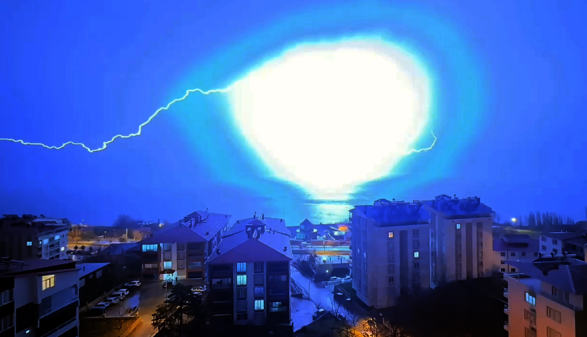 Meteorolojinin uyarısı sonrası Ahlat’ta da gök gürültülü sağanak yağış etkili oldu. Gece saatlerinde yağmur ile birlikte Van Gölü üzerinde art arda çakan şimşekler geceyi gündüze çevirdi. Şimşek görüntüleri hem korkuttu hem kartpostallık görüntüsüyle hayran bıraktı. Ahlatlı doğa fotoğrafçısı Bülent Akarsu, Van Gölü’ne düşen şimşeklerin görüntüsünü kaydetti. Ortaya görsel şölen oluşturan görüntüler çıktı.
