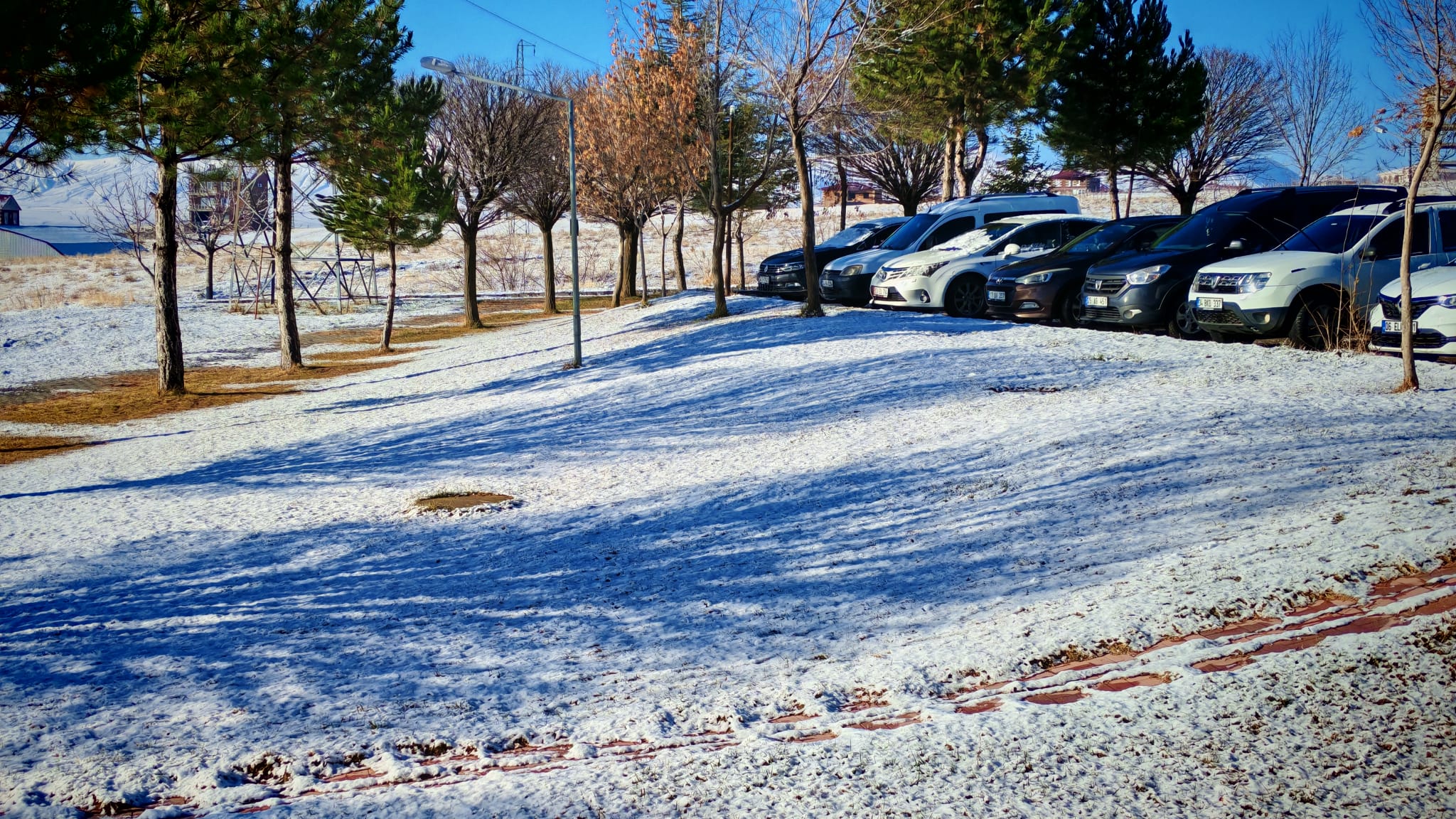 Bitlis’in Ahlat ilçesinde hava sıcaklıklarının düşmesiyle şehir merkezinde kırağı oluştu, yüksek kesimler ve köyler ise beyaza büründü.