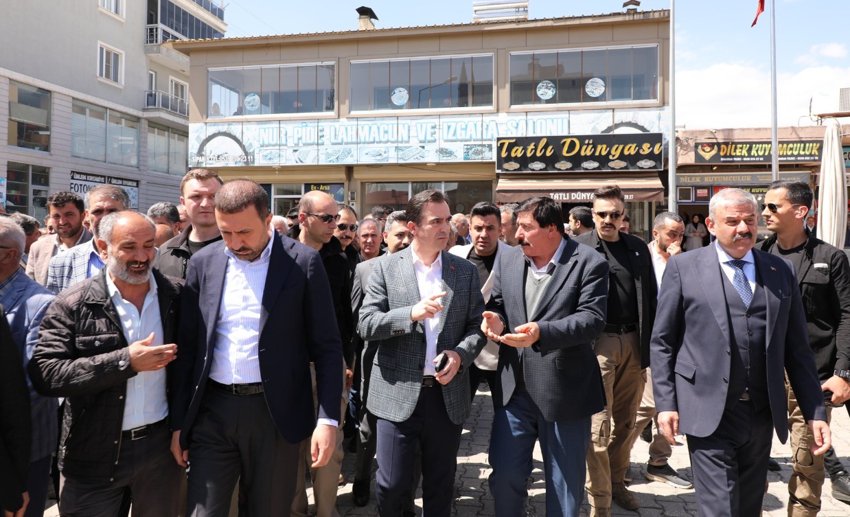 Selçuklu Mahallesi Meydanı'nda esnaf ve vatandaşlarla buluşan Vali Karakaya ile Milletvekili Bedirhanoğlu, bire bir görüşmeler yaparak vatandaşların istek ve önerilerini not aldı.