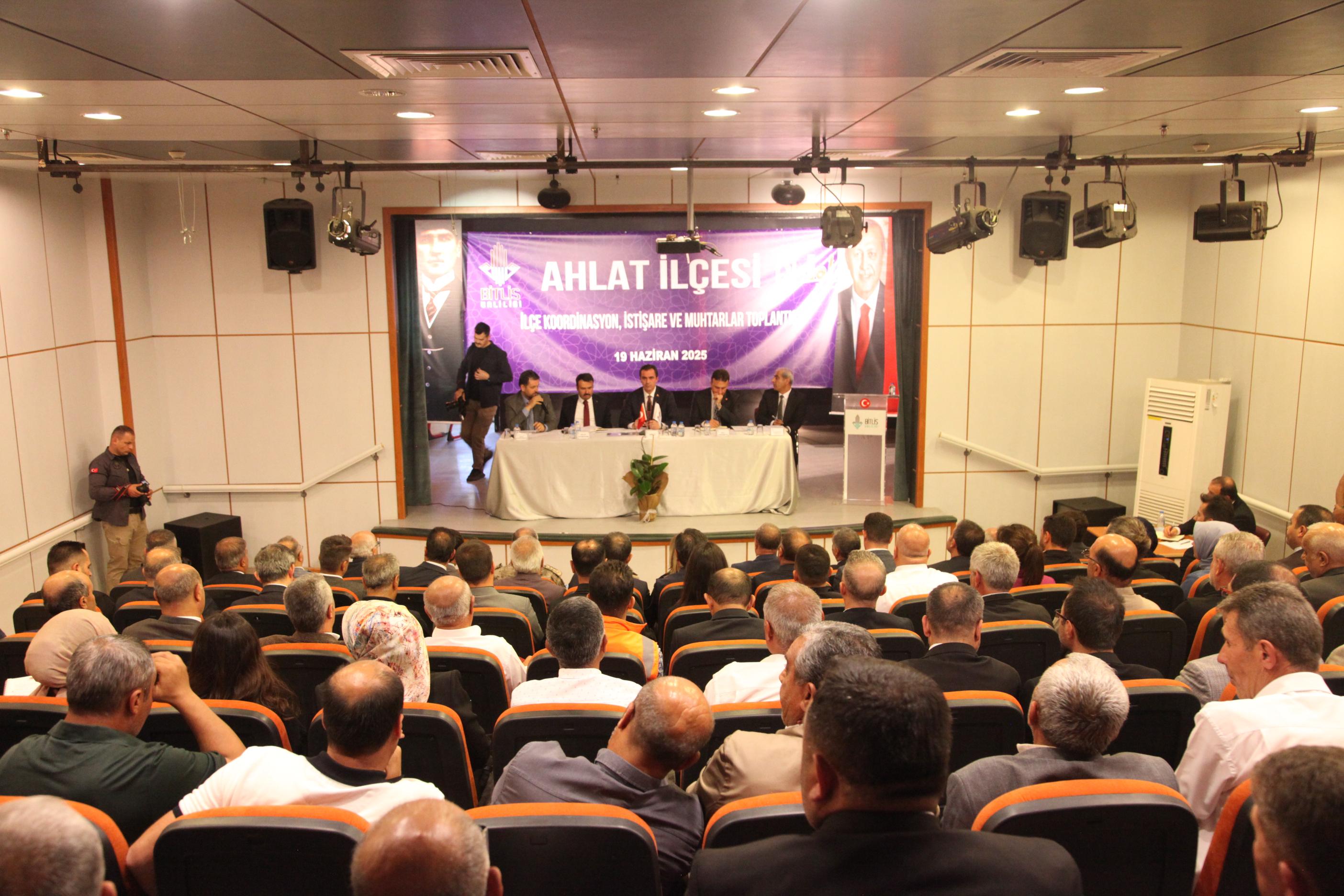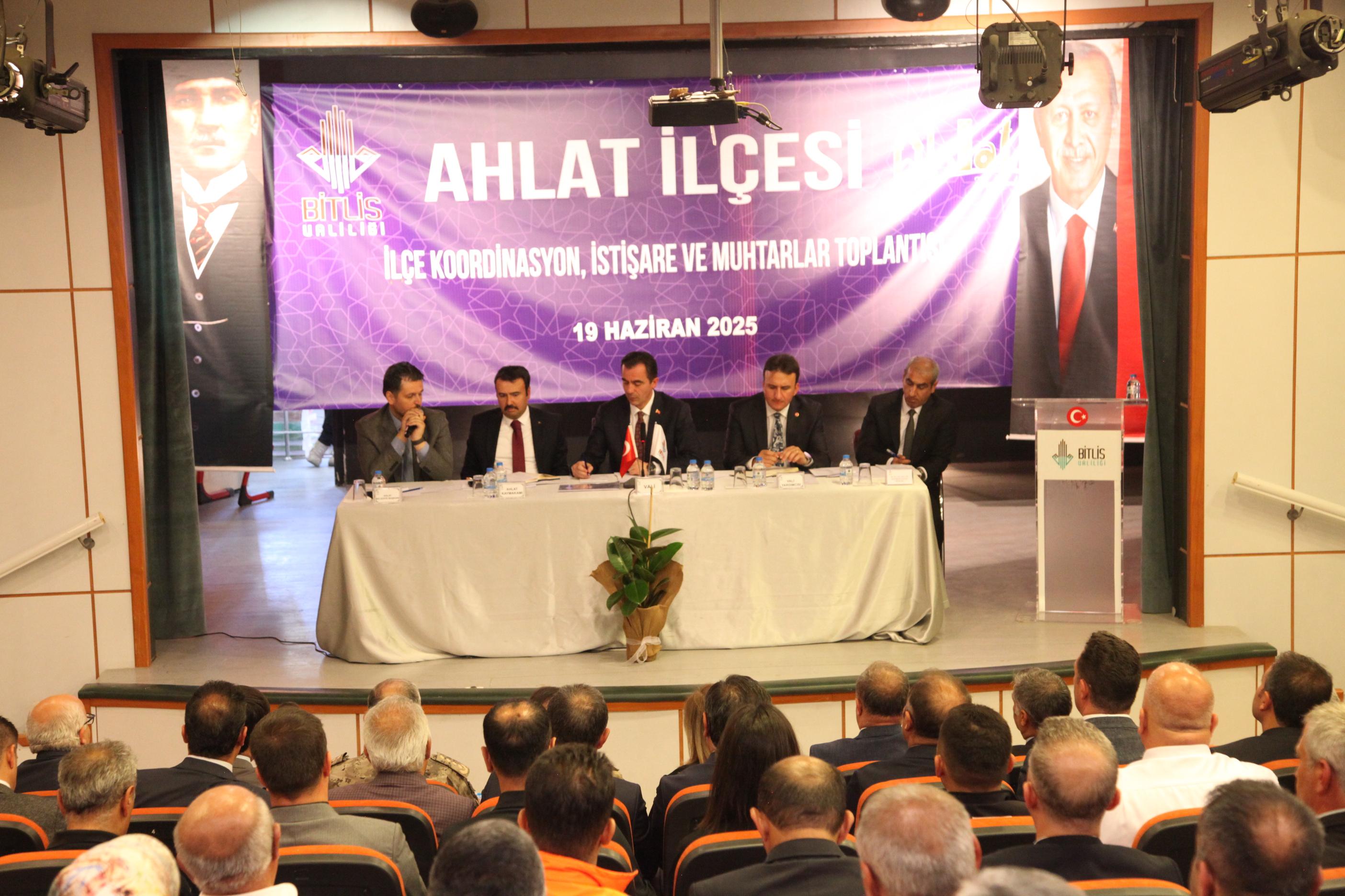 Ahlat Kaymakamı Batuhan Bingöl ise yaptığı konuşmada kurumlar arası uyum ve vatandaş odaklı hizmet vurgusu yaptı: “İl birim amirlerimize kamu kaynaklarının etkin, verimli ve ekonomik kullanılmasına gösterdikleri hassasiyet için teşekkür ediyorum. İlçe müdürlerimizin vatandaş memnuniyetini gözeten yaklaşımları kıymetli. Muhtarlarımızla da koordineli çalışmalarımızın devam etmesini temenni ediyorum. Kamu kaynaklarını sınırlı imkânlarla maksimum faydaya dönüştürme gayretindeyiz.”