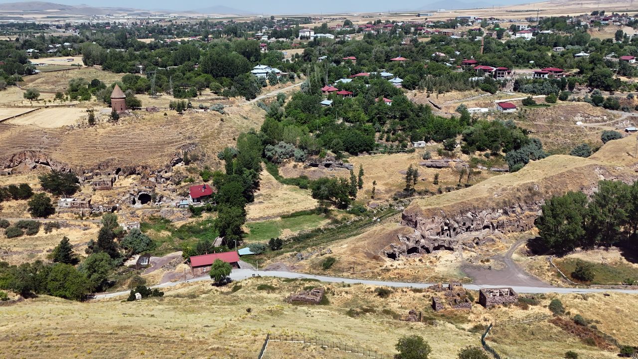 Ahlat ilçesinde, tarihi ve doğal zenginliklerin iç içe geçtiği alanlar drone ile havadan görüntülendi. Adeta açık hava müzesini andıran Ahlat’ın çeşitli noktalarında yapılan çekimlerde, ilçeye ait birçok önemli kültürel miras aynı karede buluştu. Havadan çekilen yeni görüntülerde, Harabeşir Mahallesi’nde yer alan Mağara Evler, İç Kale, tarihi Emir Bayındır Köprüsü ve Hasan Padişah Kümbeti dikkat çekici bir şekilde aynı kadrajda yer aldı. Görüntülerde tarihi yapılar ile çevresindeki doğal dokunun oluşturduğu bütünlük, izleyenlere kartpostallık manzaralar sundu. Ahlat’ın binlerce yıllık geçmişine ışık tutan yapılar, gökyüzünden yapılan bu özel çekimlerle farklı bir perspektiften gözler önüne serildi.