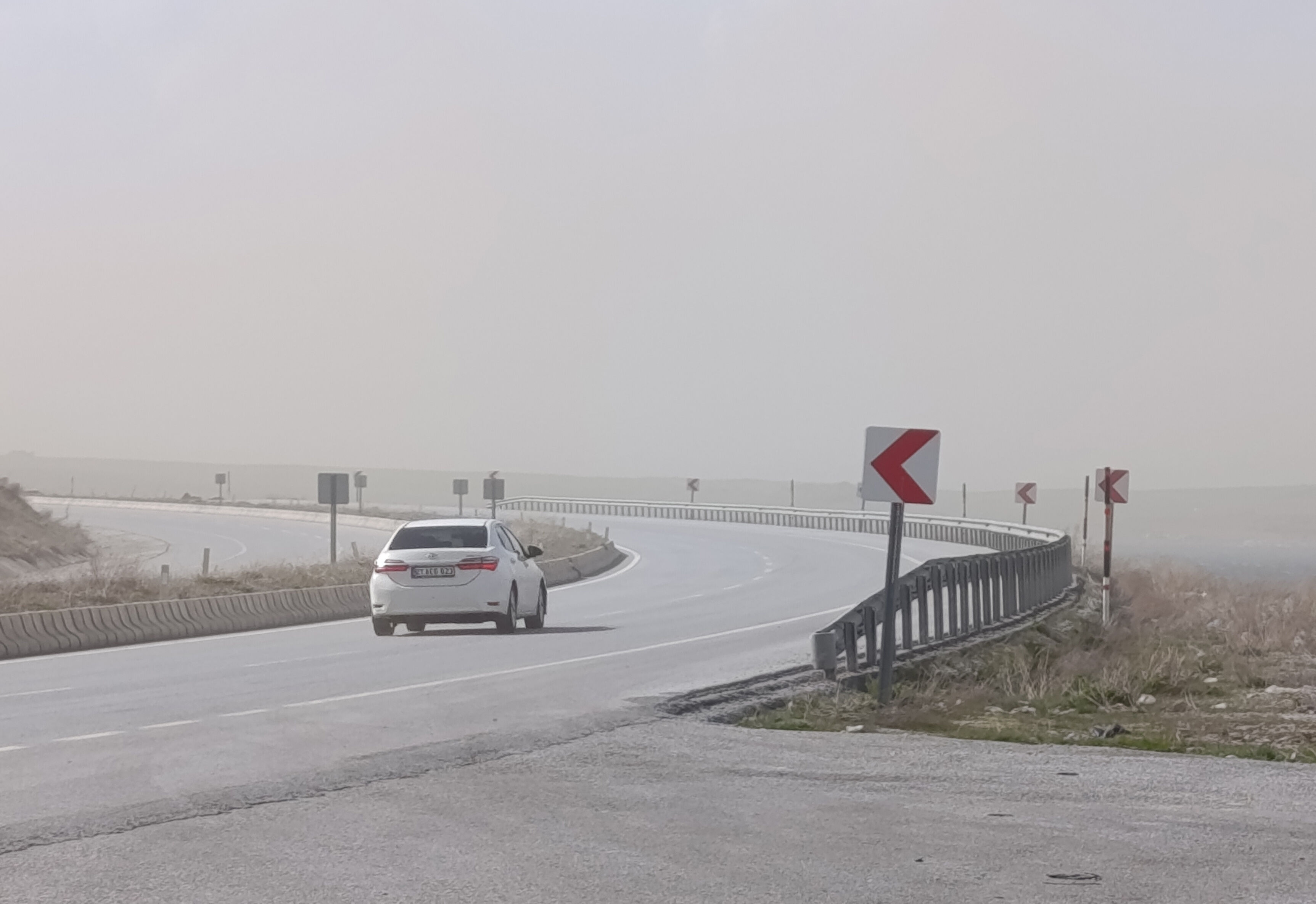 Bitlis’in Ahlat ilçesinde etkili olan şiddetli rüzgar ve fırtına, beraberinde getirdiği toz bulutuyla hayatı olumsuz etkiledi. Meteoroloji Genel Müdürlüğü tarafından yapılan uyarıların ardından ilçede rüzgarın etkisini artırmasıyla birlikte oluşan yoğun toz bulutu, görüş mesafesini ciddi oranda düşürdü. Özellikle Ahlat-Tatvan Karayolu üzerinde seyir halinde olan sürücüler, aniden düşen görüş mesafesi nedeniyle zor anlar yaşadı. Zaman zaman etkisini artıran rüzgar nedeniyle oluşan toz bulutu nedeniyle sürücüler dikkatli ilerlemek zorunda kaldı.