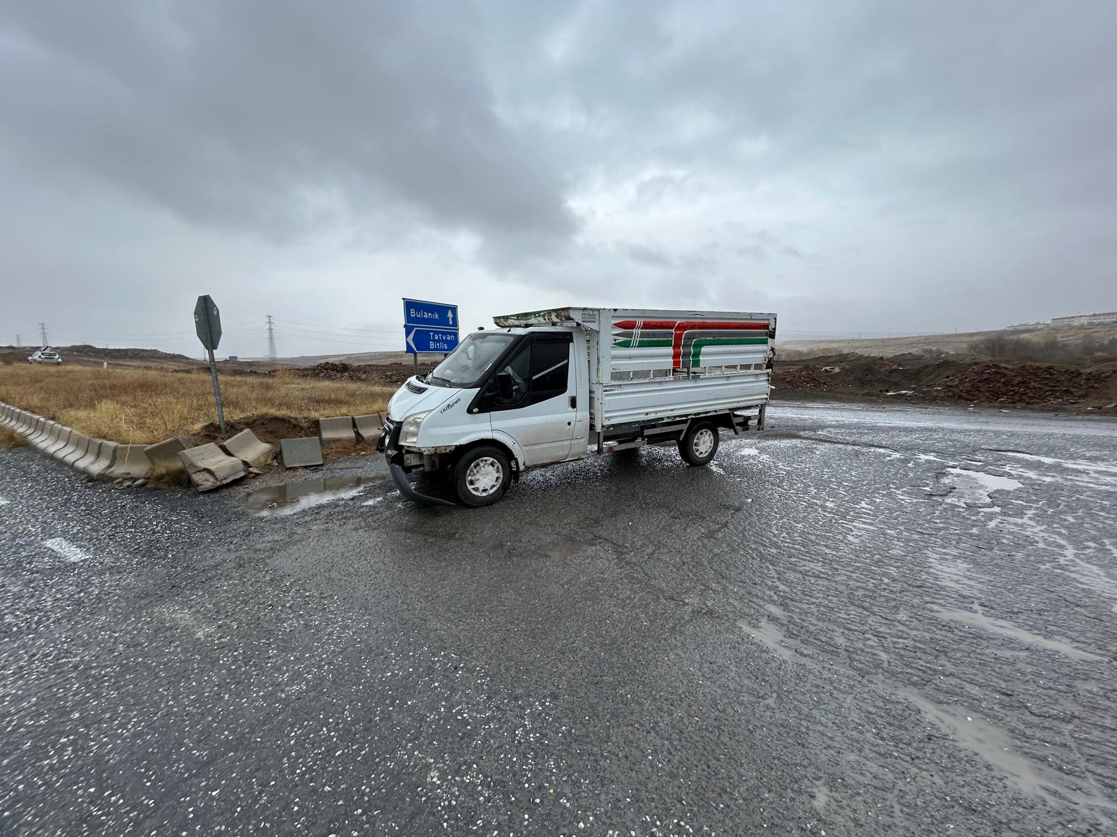 Ahlat istikametinden Bulanık yönüne ilerleyen F.K. yönetimindeki 06 DZ 9660 plakalı araç ile Bulanık istikametinden Ahlat’a doğru seyreden N.Y. idaresindeki 06 CHV 738 plakalı araç kavşak noktasında çarpıştı. Çarpışmanın etkisiyle her iki araçta da maddi hasar oluştu.
