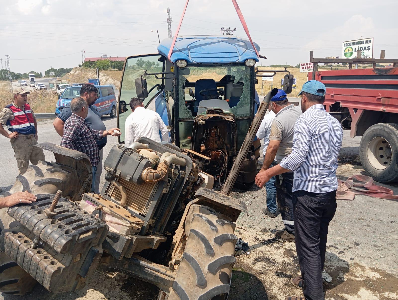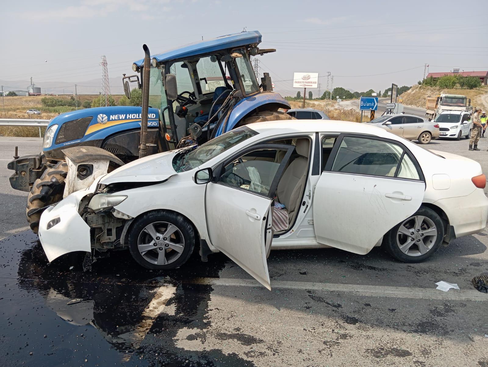 Kavşakta, 13 EB 855 plakalı traktör ile 35 DA 2784 plakalı araç kaza yaptı.