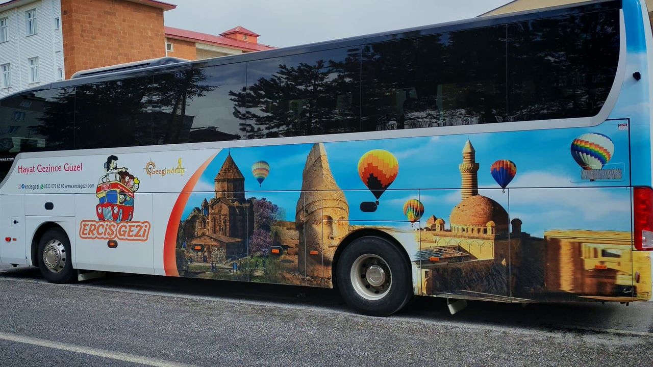 Bitlis’in Ahlat ilçesinde artan turizm hareketliliği, sokaklara da yansıyor. İlçeye gelen tur firmalarına ait özel giydirilmiş otobüsler, üzerlerinde Türkiye’nin farklı turizm bölgelerine ait görsellerle dikkat çekiyor. Kapadokya balonlarından tarihi yapılara kadar birçok simgeyi taşıyan bu araçlar, Ahlat’ta adeta gezici bir tanıtım panosu görevi görüyor.
