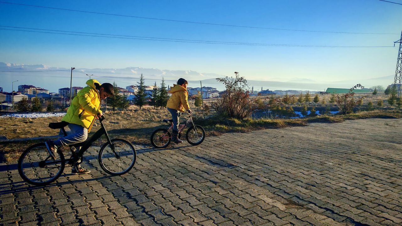 Bitlis’in Ahlat ilçesinde yüzünü gösteren güneş, soğuk kış günlerinin ardından adeta kısa süreli bir bahar havası estirdi. İlçede etkili olan ılık hava en çok çocukları sevindirdi. Uzun süredir depolarda bekleyen bisikletler birer birer çıkarıldı, mahalle araları çocuk sesleriyle doldu. Yalancı baharı fırsat bilen çocuklar, mevsimin ilk bisiklet turuna çıkmanın heyecanını doyasıya yaşadı. Kimi arkadaşlarıyla yarış yaptı, kimi ise uzun bir aradan sonra yeniden pedal çevirmenin tadını çıkardı.