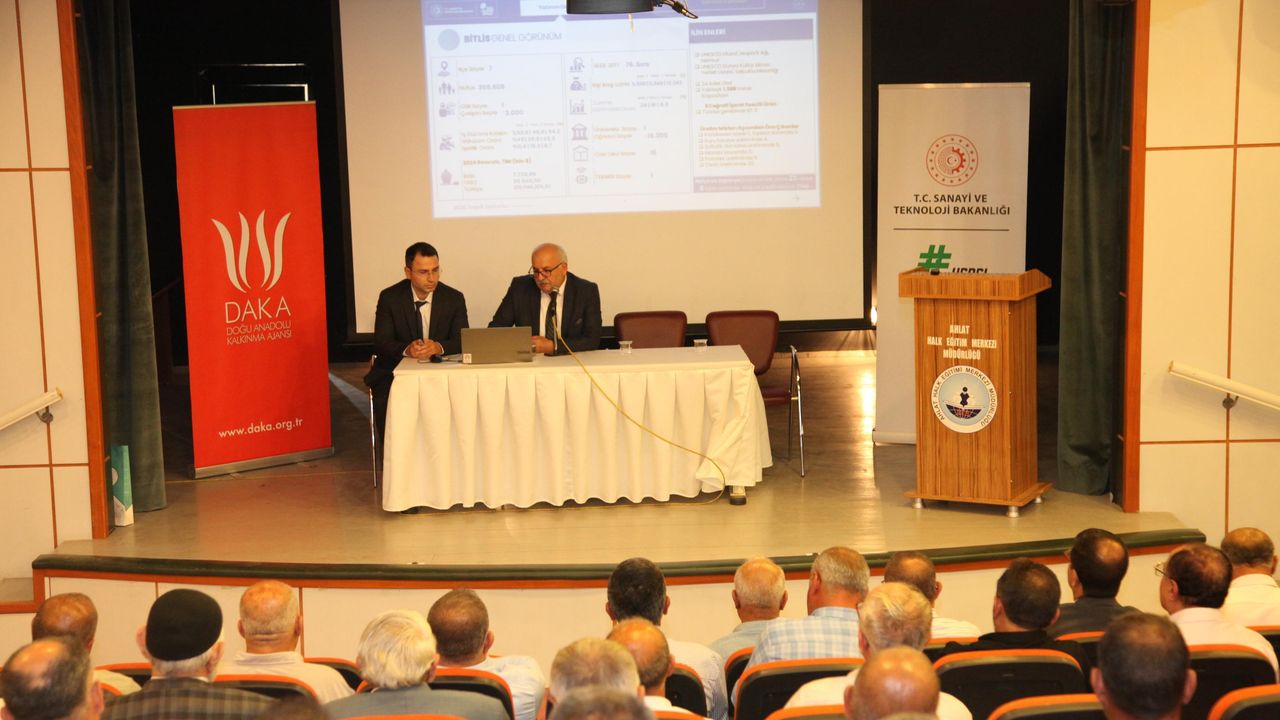 Ahlat Halk Eğitimi Merkezi konferans salonunda yapılan toplantıda, DAKA Bitlis İl Koordinatörü Nurettin Polat ile DAKA Proje Uzmanı Kerem Akın katılımcılara teşvik programları hakkında detaylı bilgiler verdi. Sunumlarda, bölgesel kalkınmayı destekleyen proje fırsatları, başvuru koşulları ve destek mekanizmaları ele alındı.