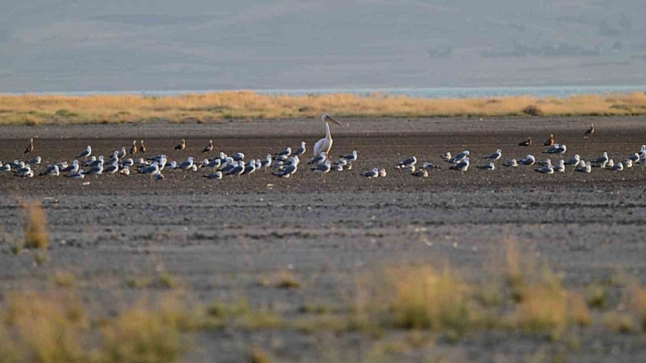 Van Gölü havzasında nadir olarak görülen Ak Pelikan, 40 yıl sonra Erçek Gölü'nde görüntülendi.