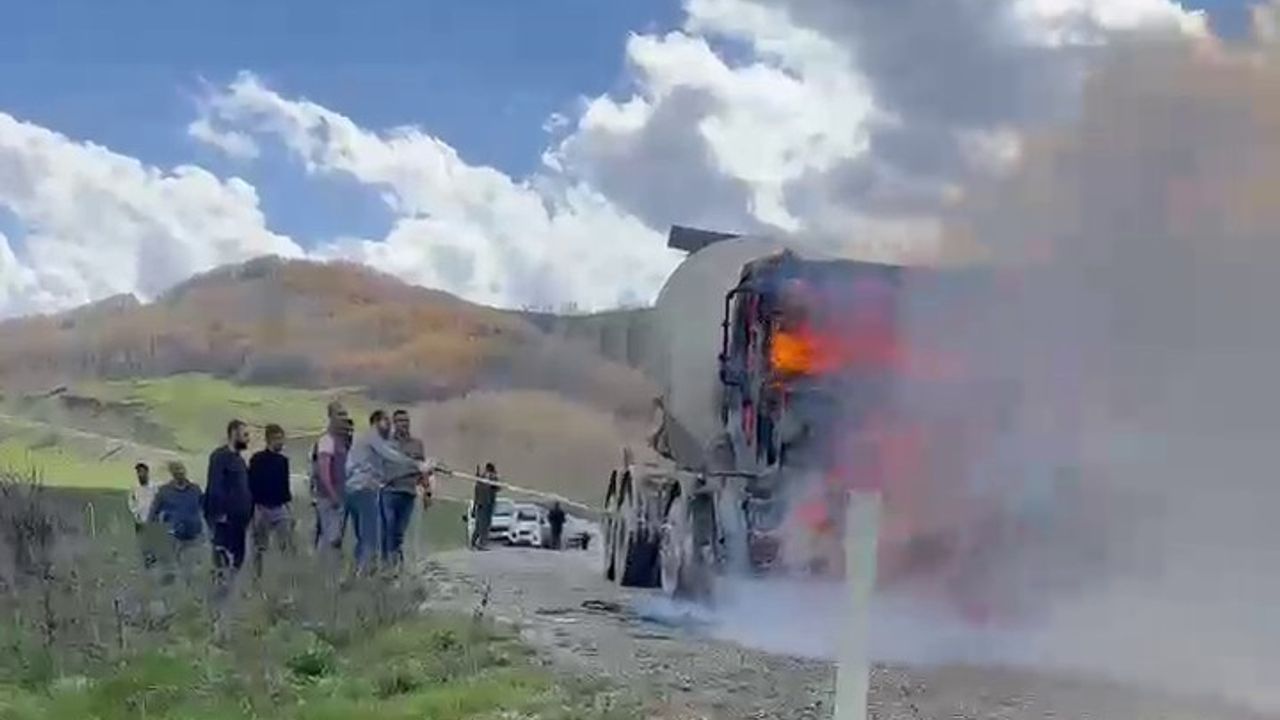 Erzurum’un Aziziye ilçesinde bir beton mikserinin ön tarafı seyir halinde iken alev aldı ve bir anda araç ateş topuna döndü.