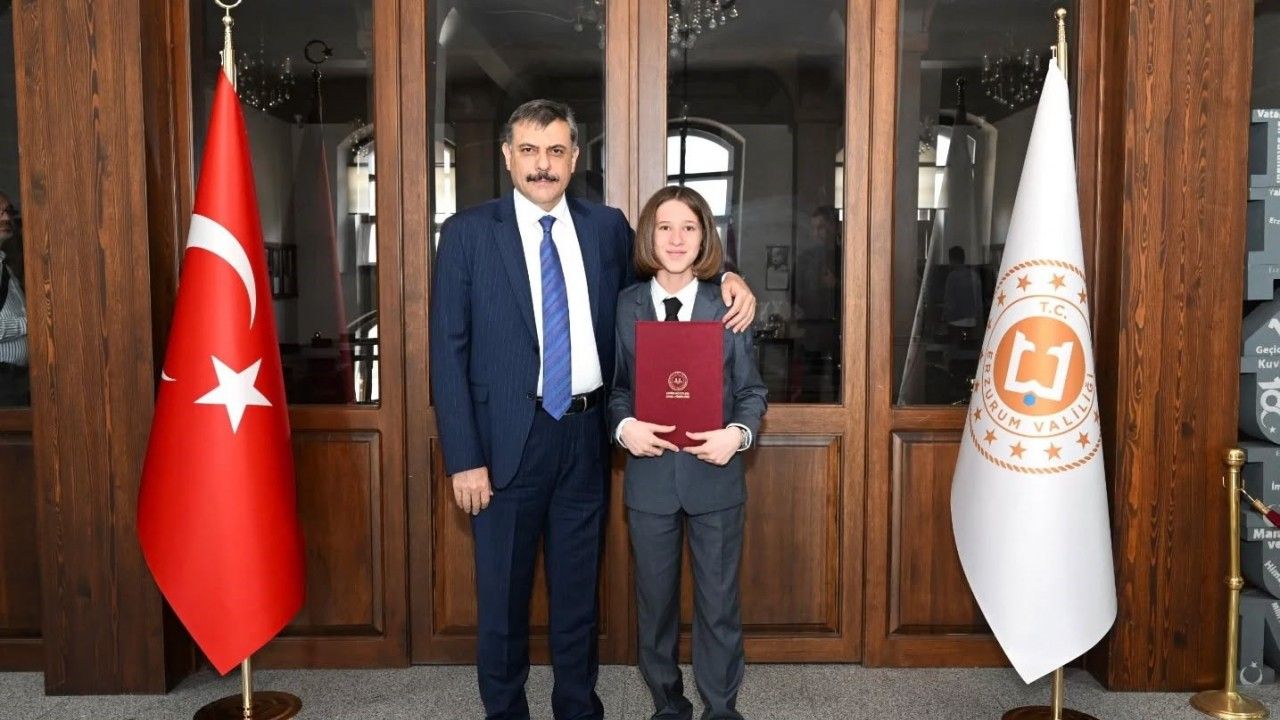 Geçtiğimiz ay hafızlık belgesini alan Alperen Yılmaz, ailesiyle birlikte hayalinin ilham kaynağı olan Vali Mustafa Çiftçi’yi ziyaret etti. Daha önce katıldığı televizyon programında hafız bir vali olma isteğini dile getiren ve ardından hafızlık merasimine kadar yaşadığı üç yıllık inanç ve azim dolu yolculuğu sosyal medyadan paylaşan Alperen, ailesiyle birlikte Erzurum Valisi Mustafa Çiftçi’nin misafiri oldu.