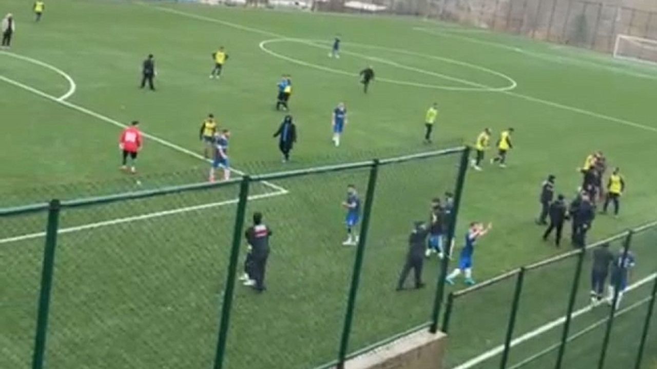 Malatya 1. Amatör Ligi A Grubu'nda oynanan Malatya Konakspor-166 Malatya Gençlikspor müsabakasında saha içi karıştı, taraftarların taşlı saldırısında 3 futbolcu yaralandı.