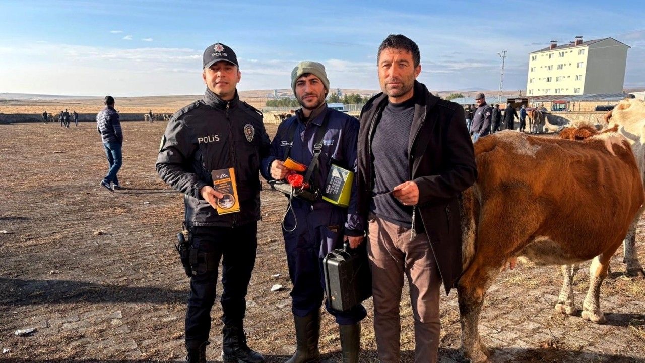 Ardahan’ın Damal ilçesinde polis, hayvan pazarında broşür dağıtarak sahte parayla dolandırıcılık olaylarına karşı satıcıları uyardı.
