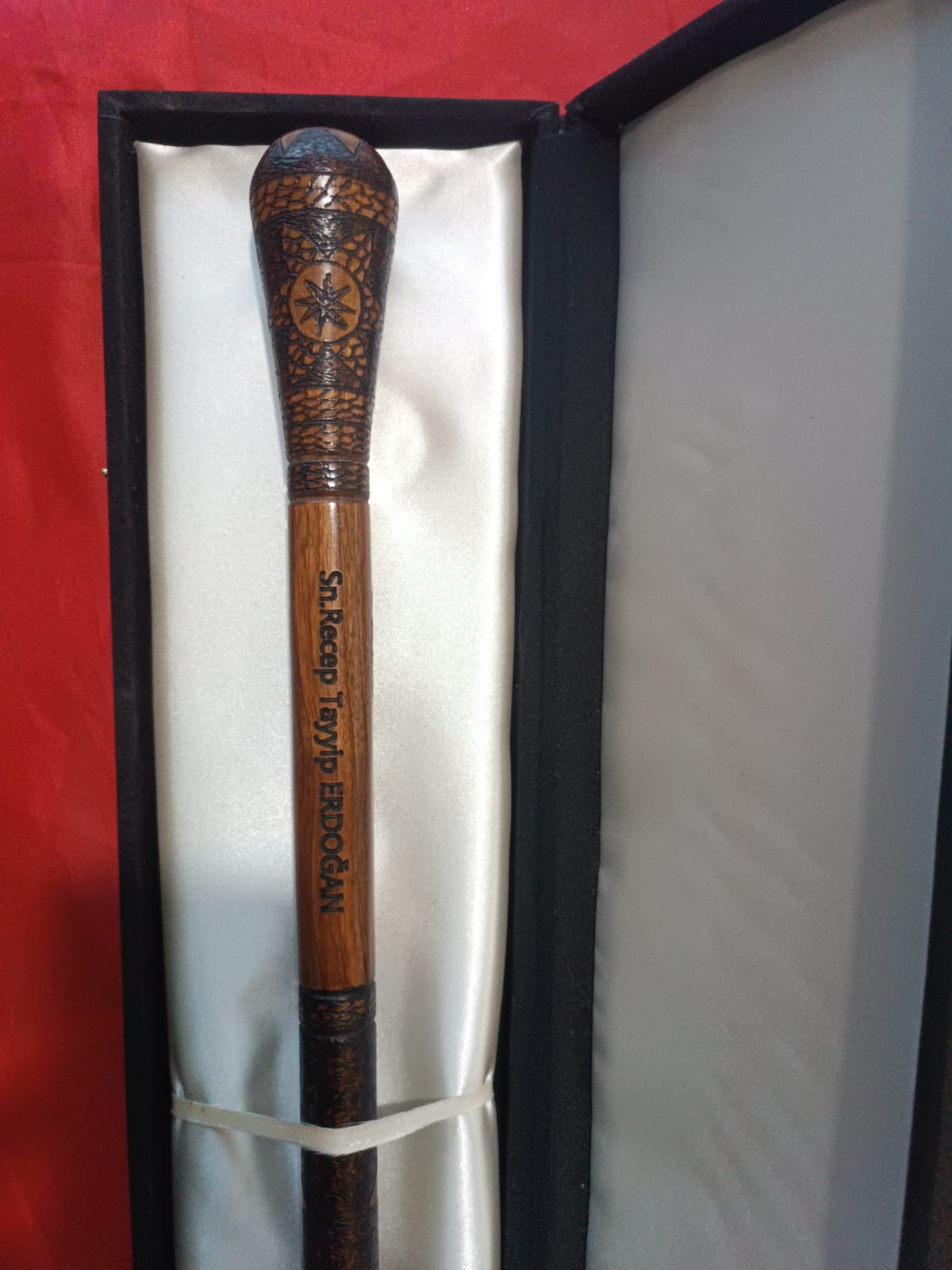 Karakuzu yaptığı açıklamada, “Türk ve İslam kültüründe saygı duyulan kişilere baston hediye etmek, onlara sağlıklı ve uzun ömürler dilemenin en güzel şeklidir. İş insanımızın özel talebiyle, büyük bir titizlikle bu bastonu hazırladım. Cumhurbaşkanımıza da sağlıklı ve uzun ömürler dilerim.” ifadelerini kullandı.