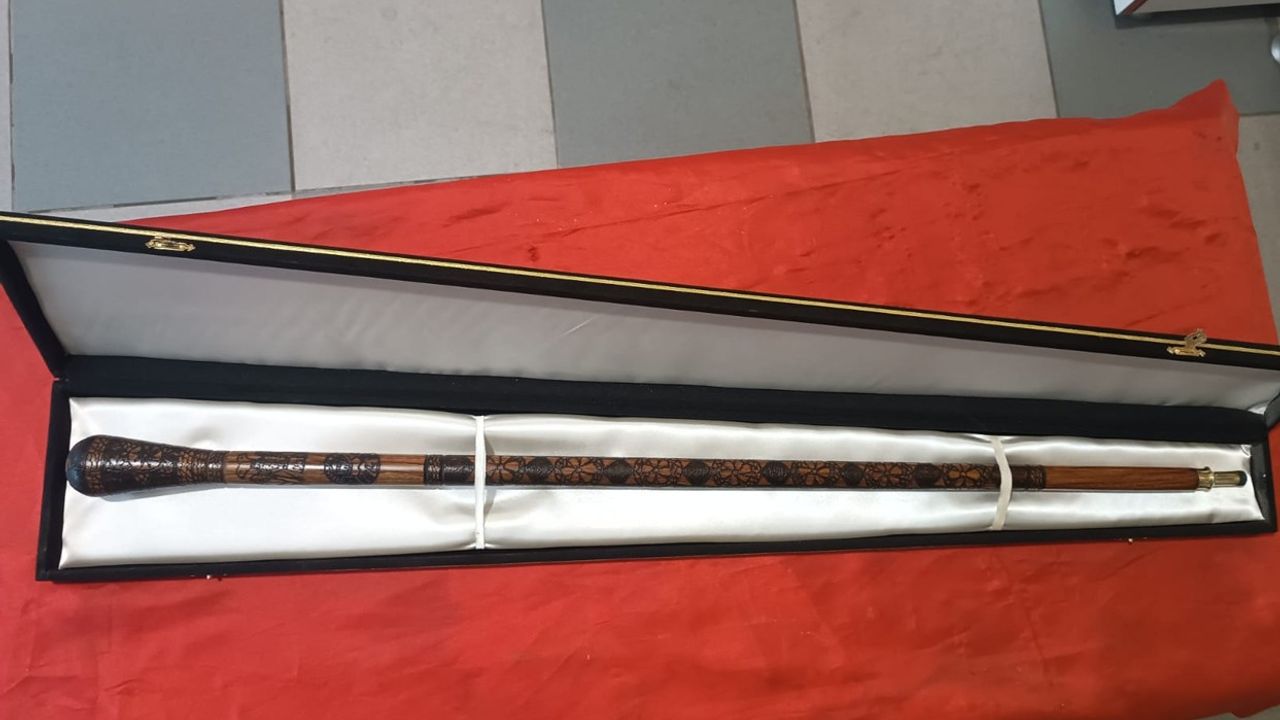 Bir iş insanının talebi üzerine hazırlanan baston, asırlık kök ceviz ağacından tamamen el işçiliğiyle üretildi.