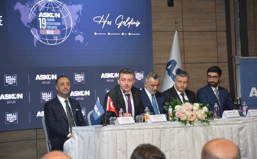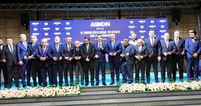 ASKON Bitlis Şube Başkanı Erhan Ayaz’da, “Bitlis’in bir tekstilkent olma yolunda emin adımlarla ilerliyor. Bunun yanı sıra yer altı madenleri bakımından da zengin olan ilimizde özellikle Pomza Perlit madeni sanayi ham maddesi açısından önemli rezerv kaynaklarından biri olmakla birlikte, Türkiye’deki rezervin yüzde 70’i Bitis’te bulunmaktadır. Bitlis’in tarım alanında da bir çok üründe Ülkemizde ilk sıralarda yer alıyor. Turizm sektöründe ise son yıllarda dere ıslahı çalışması kapsamında 780 adet tescilli tarihi yapının var olduğu Vakıflar Bölge Müdürlüğü tarafından onaylanmıştır” dedi. Açılış konuşmalarının ardından 19. Ekonomi Değerlendirme Toplantısı’na geçilerek güncel ekonomik gelişmeler ele alındı ve bölgeye yönelik yatırım beklentileri ile ilgili sunum yapıldı. Toplantının ardından, ASKON Bitlis Şubesi’nin kurdele kesimi ile resmî olarak açılması ve toplu fotoğraf çekiminin ardından program sona erdi. Toplantıya Bitlis Valisi Ahmet Karakaya, ASKON Genel Başkanı Orhan Aydın, Genel Merkez Yönetim Kurulu Üyeleri, Bitlis Şube Başkanı Erhan Ayaz, AK Parti İl Başkanı Kadir Köstekçi, Bitlis Eren Üniversitesi Rektör Yardımcısı Prof. Dr. Ayhan Yılmaz, TATSO Başkanı Bilal Adabağ, STK temsilcileri, iş insanları ve çok sayıda vatandaş katıldı.