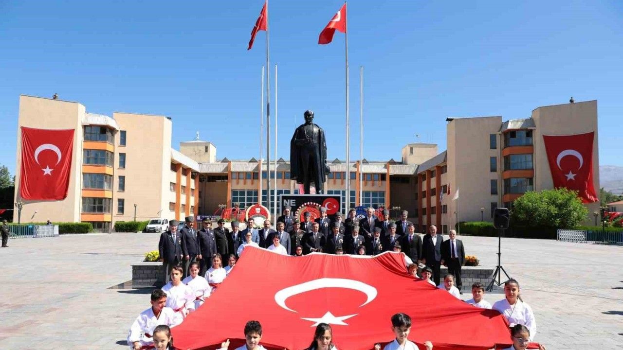 Yıl dönümü dolayısıyla Gençlik ve Spor İl Müdürlüğü sporcuları, ellerinde Türk bayrağı ile Ergan Kavşağı’ndan belediye binası önündeki Atatürk Anıtı’na kadar yürüdü.