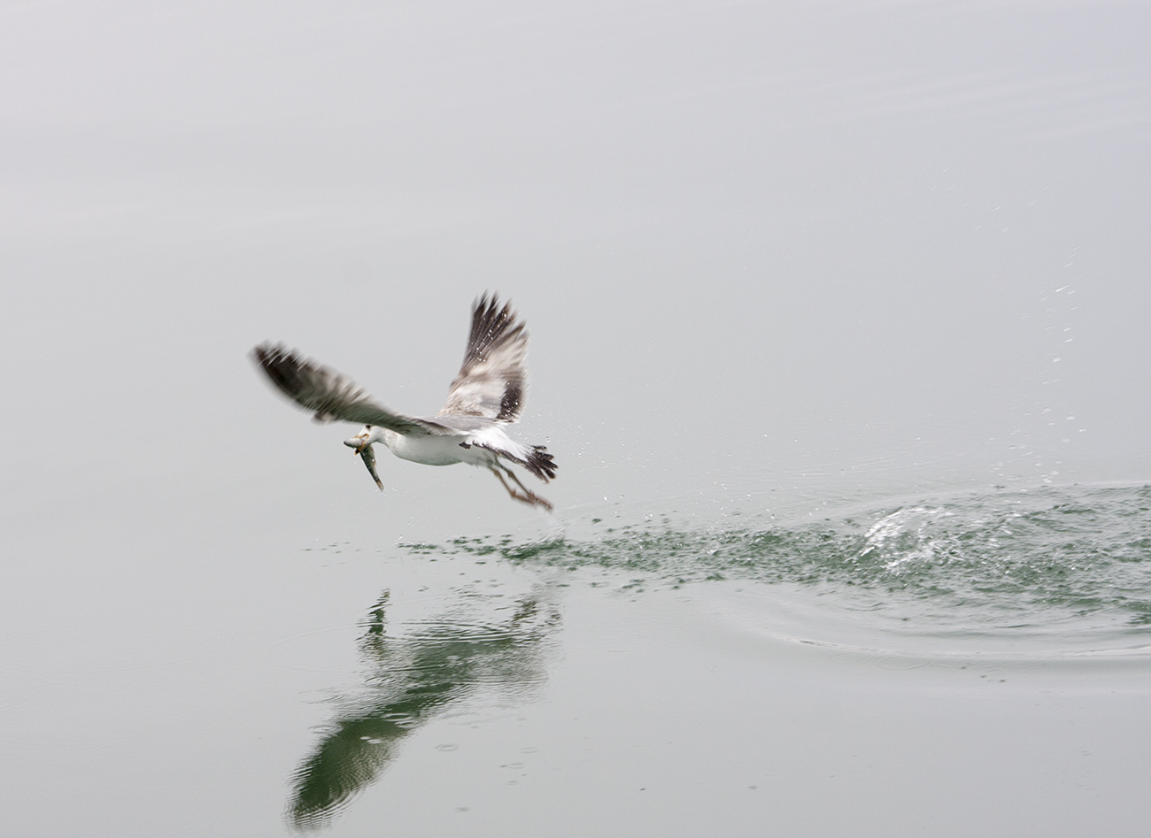 İnci kefalinin tatlı sulara göçüyle birlikte yüzeye yakınlaşan balıkları ustaca yakalayan martıların bu av anları, deneyimli fotoğrafçı Geylani Adıyaman'ın objektifine yansıdı. Adıyaman'ın etkileyici kareleri, martıların doğal avlanma davranışını çarpıcı bir şekilde gözler önüne seriyor.