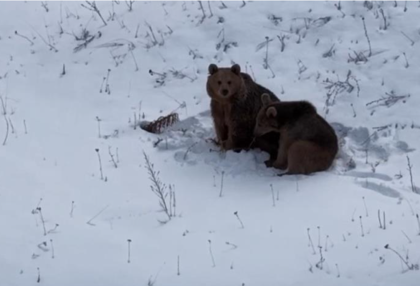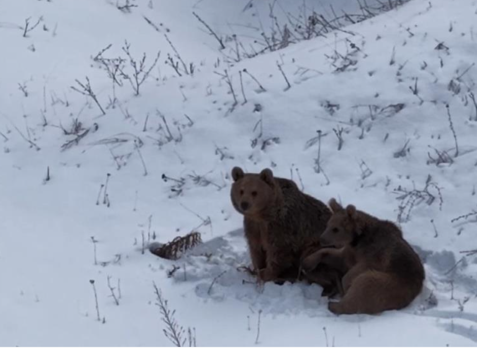 Kars’ın Sarıkamış ilçesinde her gün ayılar kameralara yansıyor. İlçede adeta vatandaşlarla birlikte yaşayan boz ayılar, bu sefer ormanlık alanda dinlenirken dron ile görüntülendi. Otururken yanlarına gelen drona hayretle bakan anne ve yavru ayı, daha sonra ağaçların yanında duran diğer yavru ayı ile birlikte kaçarak bölgeden uzaklaştı.(Haber Merkezi)