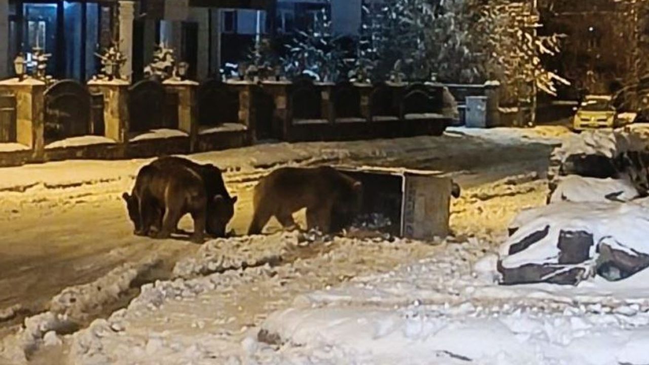 Kars’ta, kış uykusundan uyanan boz ayılar sokaklarda cirit atıyor. Ayılardan birisi bahçe duvarında gözetleme yaparken, diğerleri ise konteynırları devirerek yiyecek arıyor. O anlar kameralara yansıdı.
