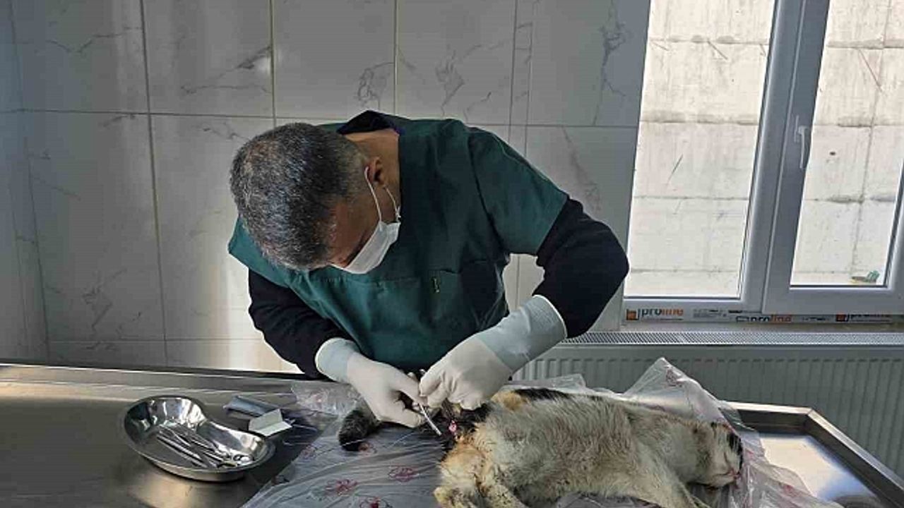 Hakkari'de kalın bağırsağı dışarı çıkmış halde kliniğe getirilen kedi veteriner hekimlerce ameliyat edildi.