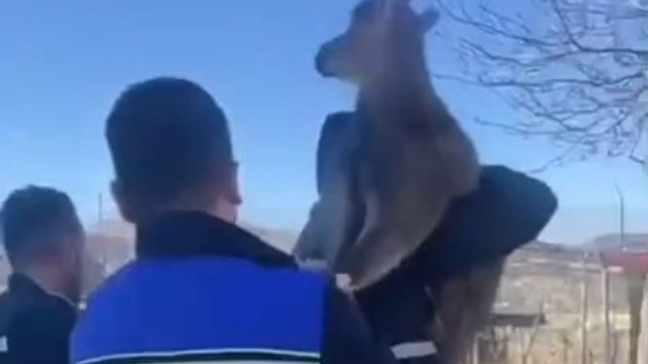 Tunceli'de bahçe çitine takılıp ayağından yaralanan yaban keçisini Fırat Elektrik Dağıtım A.Ş. (Fırat EDAŞ) ekipleri kurtardı. Keçiyi sırtında taşıyan ekipler, ardından jandarma ekiplerine teslim etti.