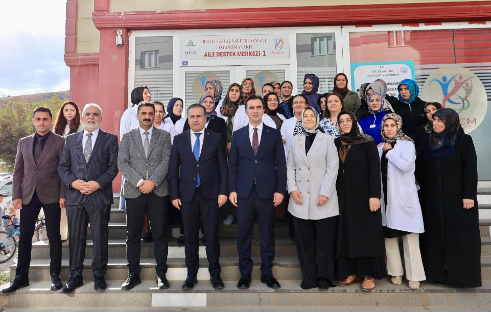 Bitlis’te temaslarda bulunan Aile ve Sosyal Hizmetler Bakan Yardımcısı Leman Yenigün, Vali Ahmet Karakaya ile birlikte Aile Destek Merkezi (ADEM 1)’i ziyaret etti. Yenigün ve Karakaya, kursiyerlerle bir araya gelerek merkezin yürüttüğü eğitim ve üretim faaliyetleri hakkında bilgi aldı. Kursiyerlerin kendi elleriyle hazırladığı ürünleri inceleyen Bakan Yardımcısı, çalışmaların önemine dikkat çekerek kolaylıklar diledi.