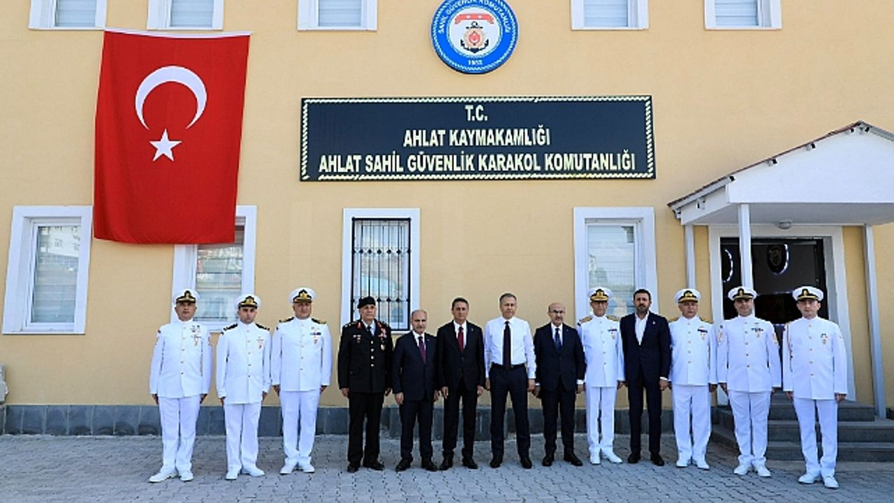 İçişleri Bakanı Ali Yerlikaya, Bitlis’in Ahlat ilçesinde bulunan Sahil Güvenlik Karakol Komutanlığını ziyaret etti. Malazgirt Zaferinin 953. yıl dönümü kutlamaları için Ahlat’a gelen Bakan Yerlikaya, çeşitli gezi ve incelemelerde bulundu. Bakan Yerlikaya sosyal medya hesabından yapıtığı paylaşımda ise, “Sahil Güvenlik Komutanlığımız Mavi Vatan’ımızın dört bir yanında olduğu gibi Van Gölü’nde de huzur ve güvenliği tesis etmek için canla başla çalışmalarını sürdürüyor.” Dedi. Bakan Yerlikaya’ya Emniyet Genel Müdürü Mahmut Demirtaş, İçişleri Bakan Yardımcısı Mehmet Aktaş, Bitlis Valisi Erol Karaömeroğlu ve Ak Parti Bitlis Milletvekili Turan Bedirhanoğlu’da eşlik etti. (Fotoğraflar Bitlis Valiliği)