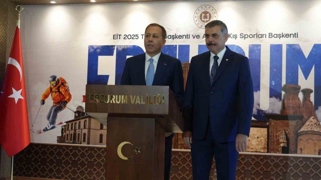 İçişleri Bakanı Ali Yerlikaya, Türkiye Yüzyılı Buluşmaları ve bir dizi program için Erzurum’a geldi.