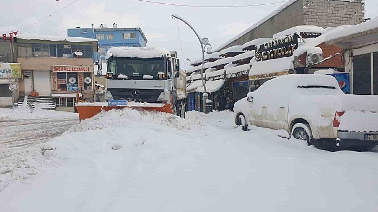 Başkale ilçesinde dün sabah saatlerinden itibaren yağan kar yağışı hayatı olumsuz yönde etkiledi. Aralıklarla devam eden kar yağışı nedeniyle araçlar resmen kar altında kalırken, 88 kırsal mahalle ve mezra yolu da ulaşıma kapandı. Kar kalınlığının şehir merkezinde 30 santimetre, yüksek kesimlerde ise 1 metreyi geçtiği ilçede Van Büyükşehir Belediyesi ve Başkale Belediyesi karla mücadele ekipleri kapanan mahalle ve mezra yollarını yeniden ulaşıma açmak için çalışmalarını aralıksız sürdürüyor. Güne karla uyanan esnaf, belediye ekiplerine yardımcı olup iş yerlerinin önlerini süpürerek, vatandaşların kaldırımda rahat yürüyebilmeleri için çaba sarf etti.
