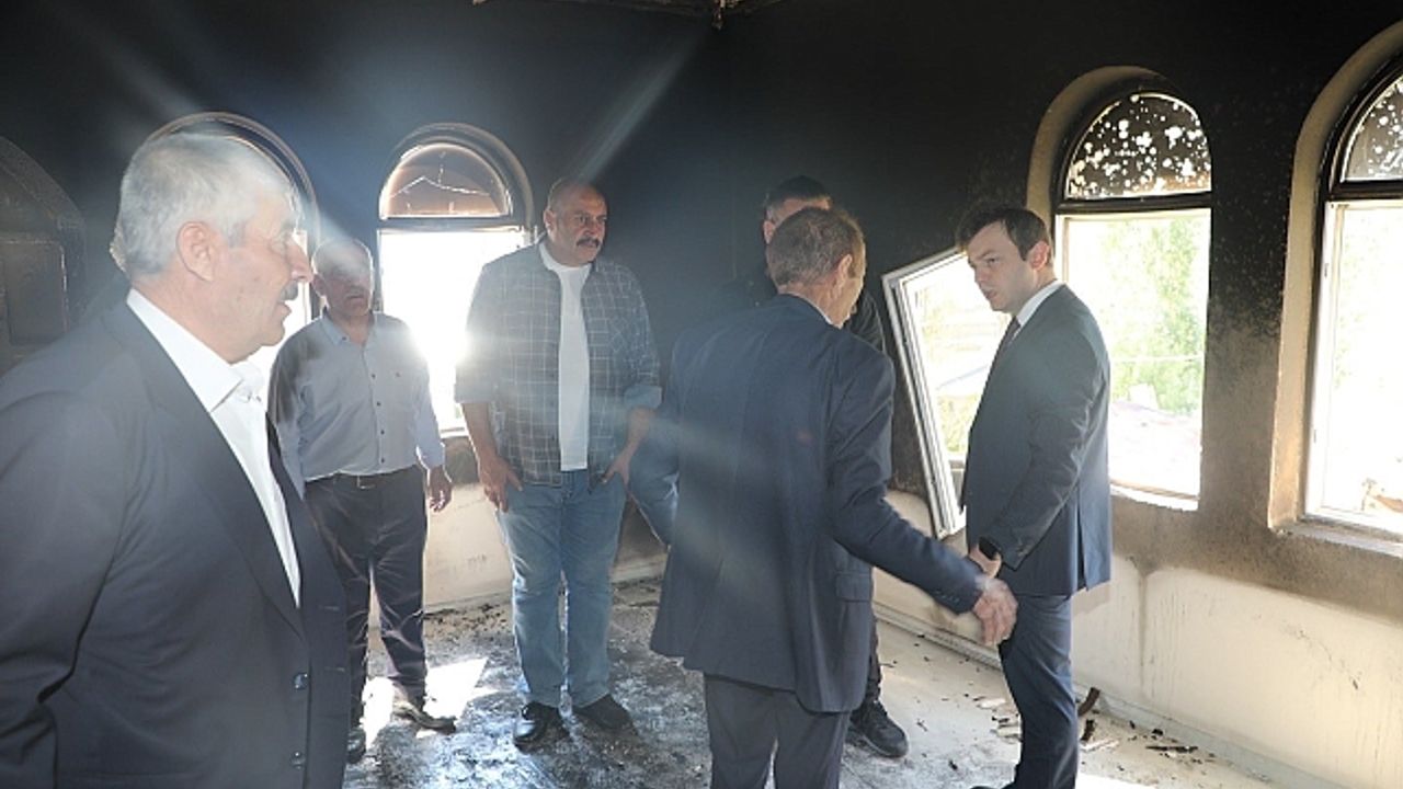 Van'ın Başkale Kaymakamı Muhammet Serdar Erdoğan, çıkan yangın sonucu evinde maddi hasar oluşan Gazi Nadir Yılmaz'ı yalnız bırakmadı.