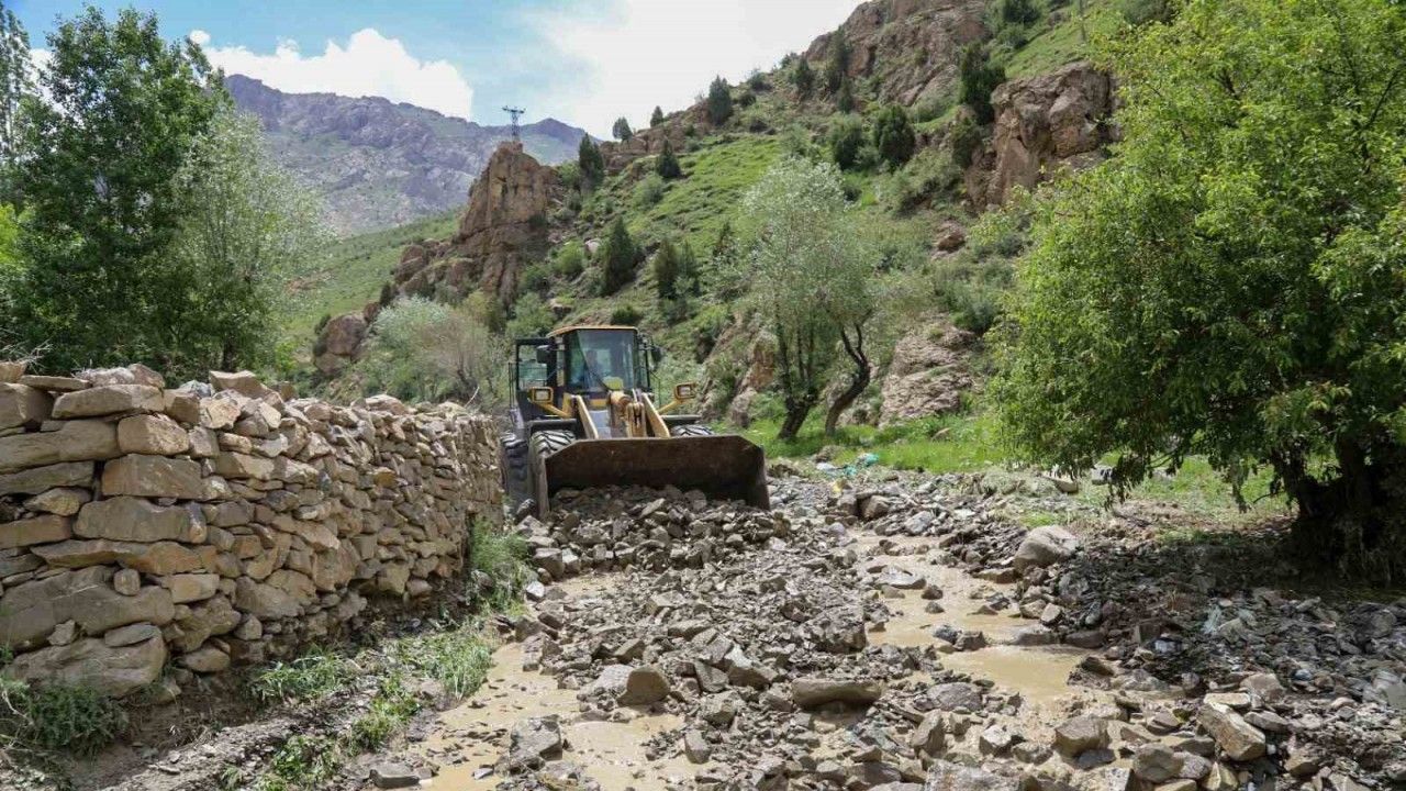 Van’ın Başkale ilçesinde etkili olan sağanağın ardından meydana gelen sel hasara yol açtı.