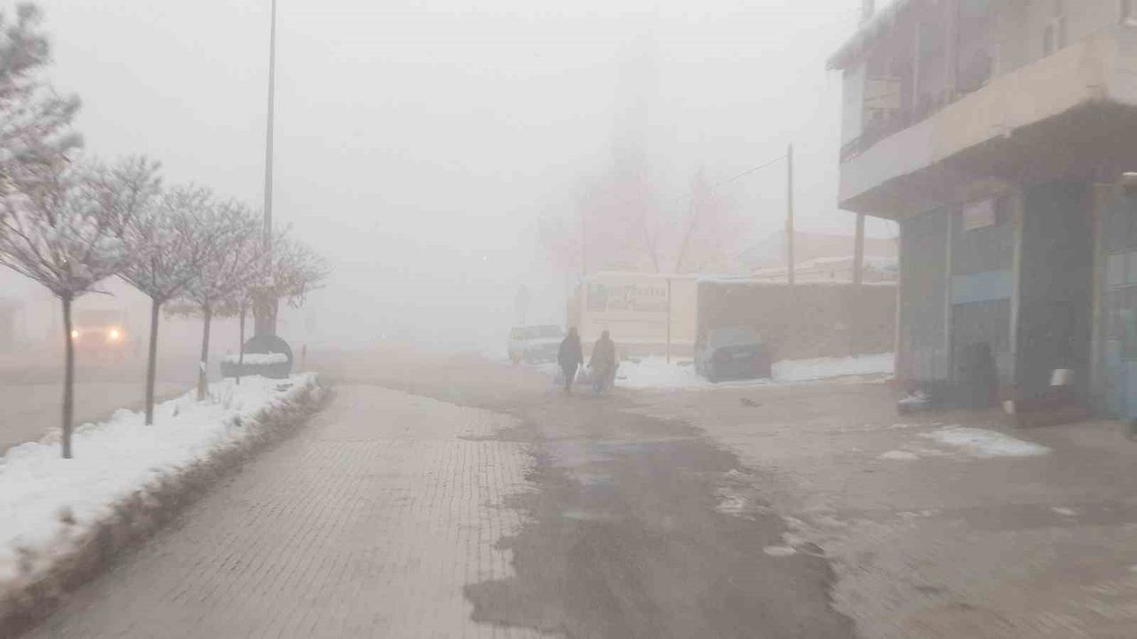 Van'ın Başkale ilçesinde etkili olan yoğun sis nedeniyle göz gözü görmüyor. Görüş mesafesi 5 metreye kadar düştü.