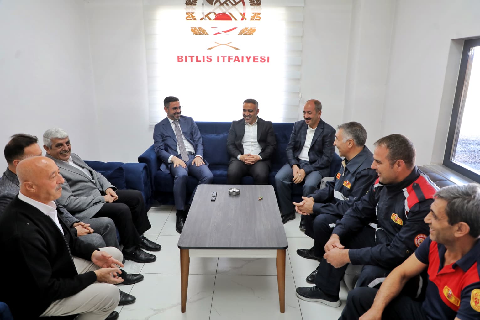 Bitlis Belediye Başkanı Nesrullah Tanğlay, Belediye Başkan Yardımcısı İbrahim Aslan ile birlikte İtfaiye Haftası dolayısıyla Bitlis Belediyesi İtfaiye Müdürlüğü’nü ziyaret etti.