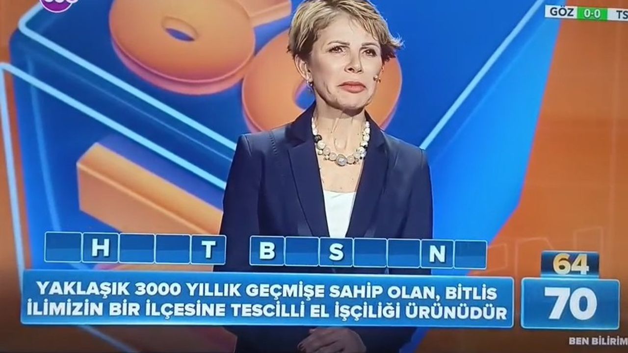 Hafta içi her akşam Alper Ateş’in sunumuyla izleyiciyle buluşan programda, yarışmacılara şu soru yöneltildi: “Yaklaşık 3000 yıllık geçmişe sahip olan, Bitlis ilimizin bir ilçesinin tescilli el işçiliği ürünüdür?” Soruya verilen doğru cevap ise “Ahlat bastonu” oldu.