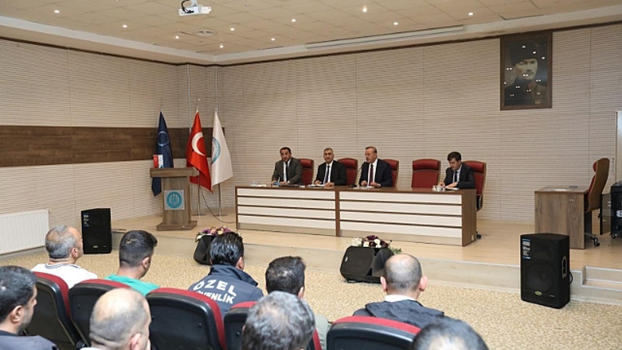 Bitlis Eren Üniversitesi (BEÜ) Rektörü Prof. Dr. Necmettin Elmastaş, yeni eğitim-öğretim yılı öncesinde Koruma ve Güvenlik Müdürlüğü personeli ile bir toplantı yaptı. Toplantıya, BEÜ Rektör Yardımcısı Prof. Dr. Ayşe Dilek Özşahin Kireçci, Genel Sekreter Doç. Dr. Behçet Kocaman, Genel Sekreter Yardımcısı İsmail Taşdemir ve Koruma ve Güvenlik Müdürü Ayetullah Sayar’da katıldı. İktisadi ve İdari Bilimler Fakültesi Konferans Salonu'nda gerçekleştirilen toplantıda, öğrencilerin ve kampüsün güvenliğini sağlamak için alınabilecek önlemler kapsamlı bir şekilde ele alındı. Yeni dönemde güvenlik personelinin sorumlulukları, karşılaşılabilecek riskler ve bu risklere karşı uygulanacak tedbirler tartışıldı. BEÜ Rektörü Elmastaş, güvenli bir eğitim ortamı sağlamak adına personelin özverili çalışmalarının önemine vurgu yaptı. Toplantı, yeni akademik yıl için güvenlik stratejilerinin belirlenmesiyle sona erdi.