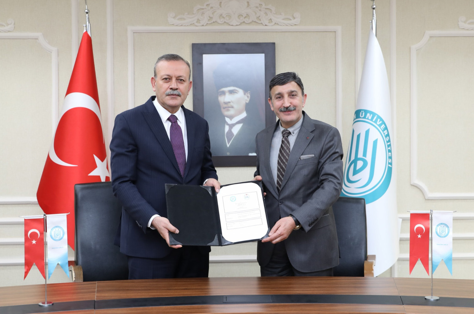 İmza törenine KOOP-İş Sendikası Van Şube Başkanı Ayhan Özbek ve sendika heyeti ile birlikte; Rektör Yardımcısı Prof. Dr. Ayhan Yılmaz, Genel Sekreter Doç. Dr. Behçet Kocaman, Genel Sekreter Yardımcıları İsmail Taşdemir ve Metin Baş, Personel Daire Başkanı Metin Oral, Hukuk Müşaviri Sercan Aksoy, Personel Daire Başkanlığı Şube Müdürü Yüksel Erat ve İdari ve Mali İşler Daire Başkanlığı Şube Müdürü Mehmet İlan katıldı.