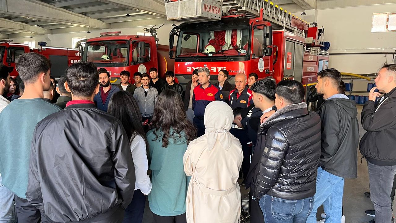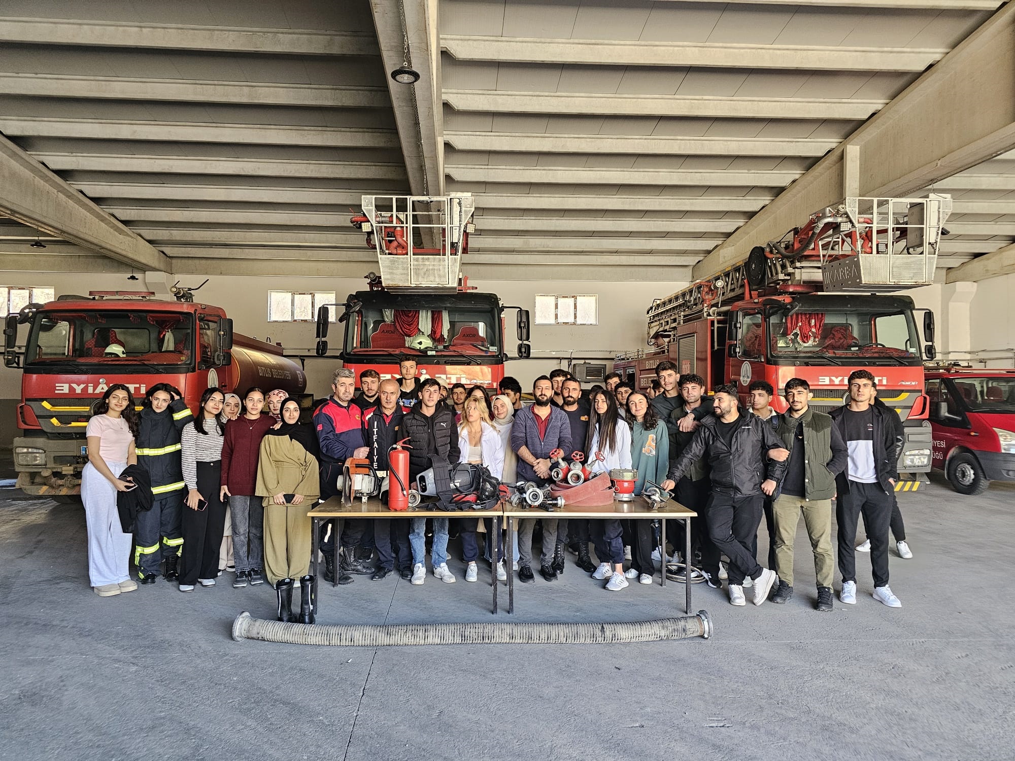 “Yangına Müdahale Teknikleri” dersi kapsamında gerçekleştirilen eğitimde, itfaiye personelleri tarafından öğrencilere yangın sırasında uygulanacak doğru müdahale yöntemleri hakkında detaylı bilgiler verildi.
