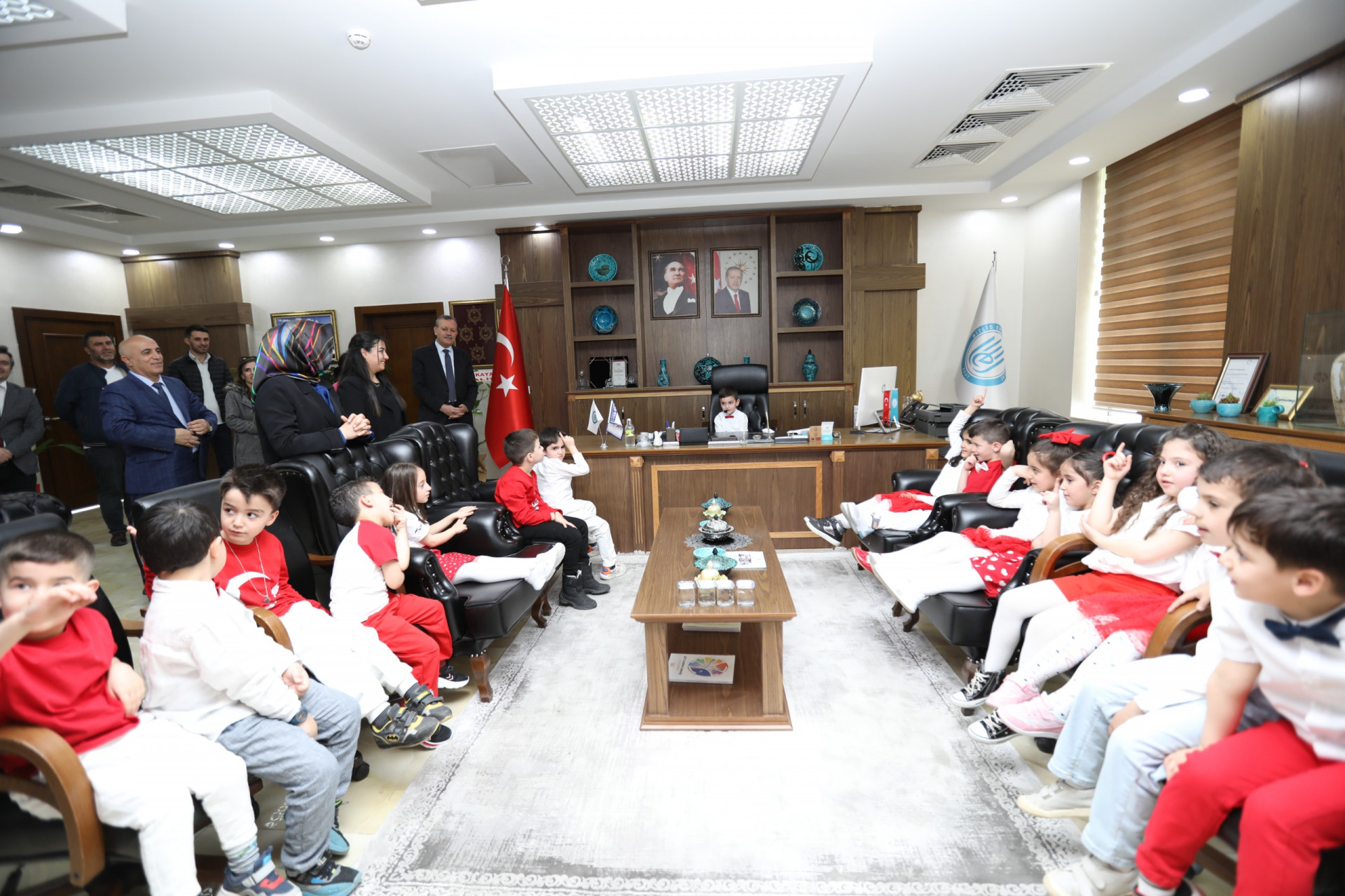 Rektör Prof. Dr. Necmettin Elmastaş, makam koltuğunu 5 yaşındaki öğrenci Yusuf Vefa Aydın’a devretti. Aydın, arkadaşlarının okul ve kreşle ilgili isteklerini Prof. Dr. Elmastaş’a iletti. Samimi ve renkli görüntülerin yaşandığı bu özel ziyarette, çocuklara hediyeler verilerek bayram sevinçleri pekiştirildi.