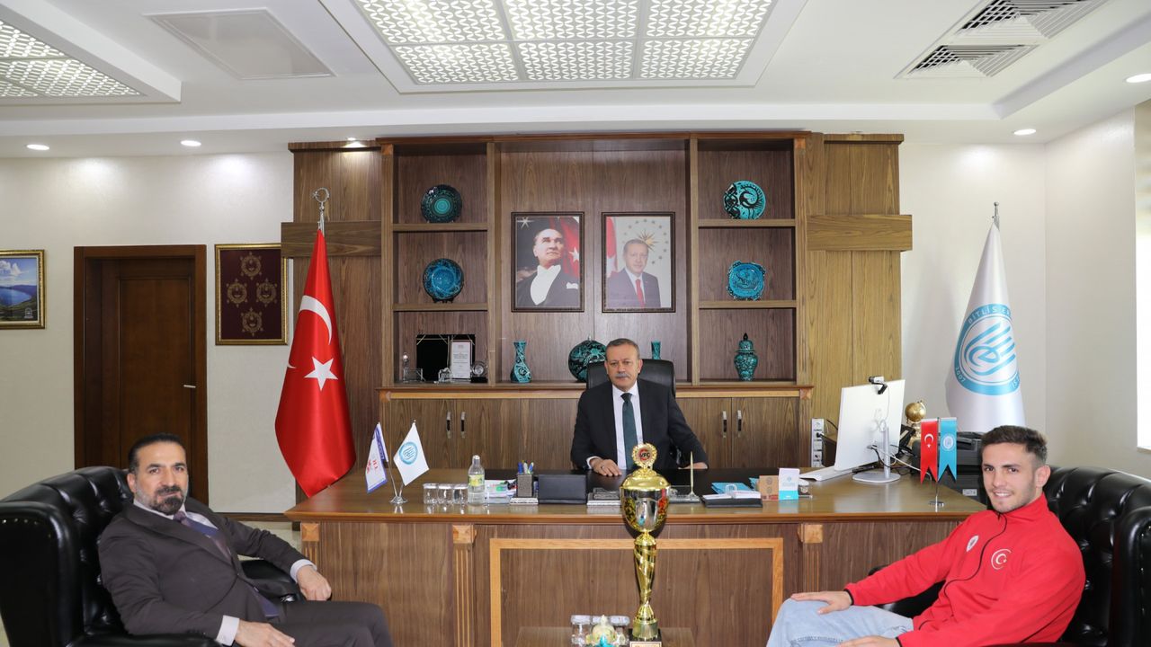 Rektör Elmastaş, başarılı sporcuya tebrik belgesi takdim ederek başarılarının devamını diledi. Ziyaret, hatıra fotoğrafı çekimiyle sona erdi.