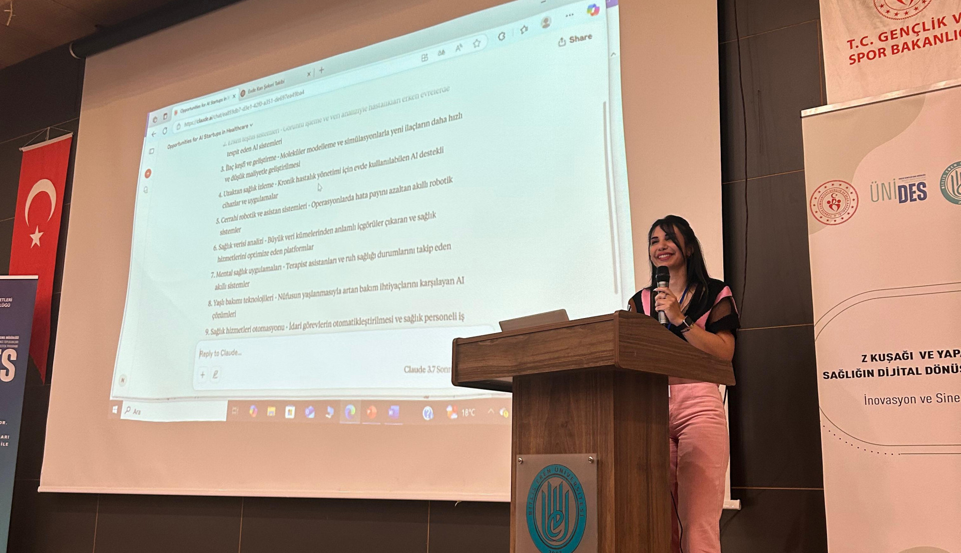 Çalıştayın açılış konuşmasını yapan İnovasyon ve Sinerji Öğrenci Kulübü Danışmanı Dr. Öğr. Üyesi Burak Sayar, “Z kuşağının teknolojiyle iç içe büyümesi, sağlık hizmetlerinin dijitalleşmesinde büyük bir potansiyel barındırıyor. Yapay zekâ, gelecekte sağlık sistemlerinin omurgasını oluşturacak. Bu süreci doğru yönetmek hem akademik dünyaya hem de genç kuşaklara önemli sorumluluklar yüklüyor” dedi.