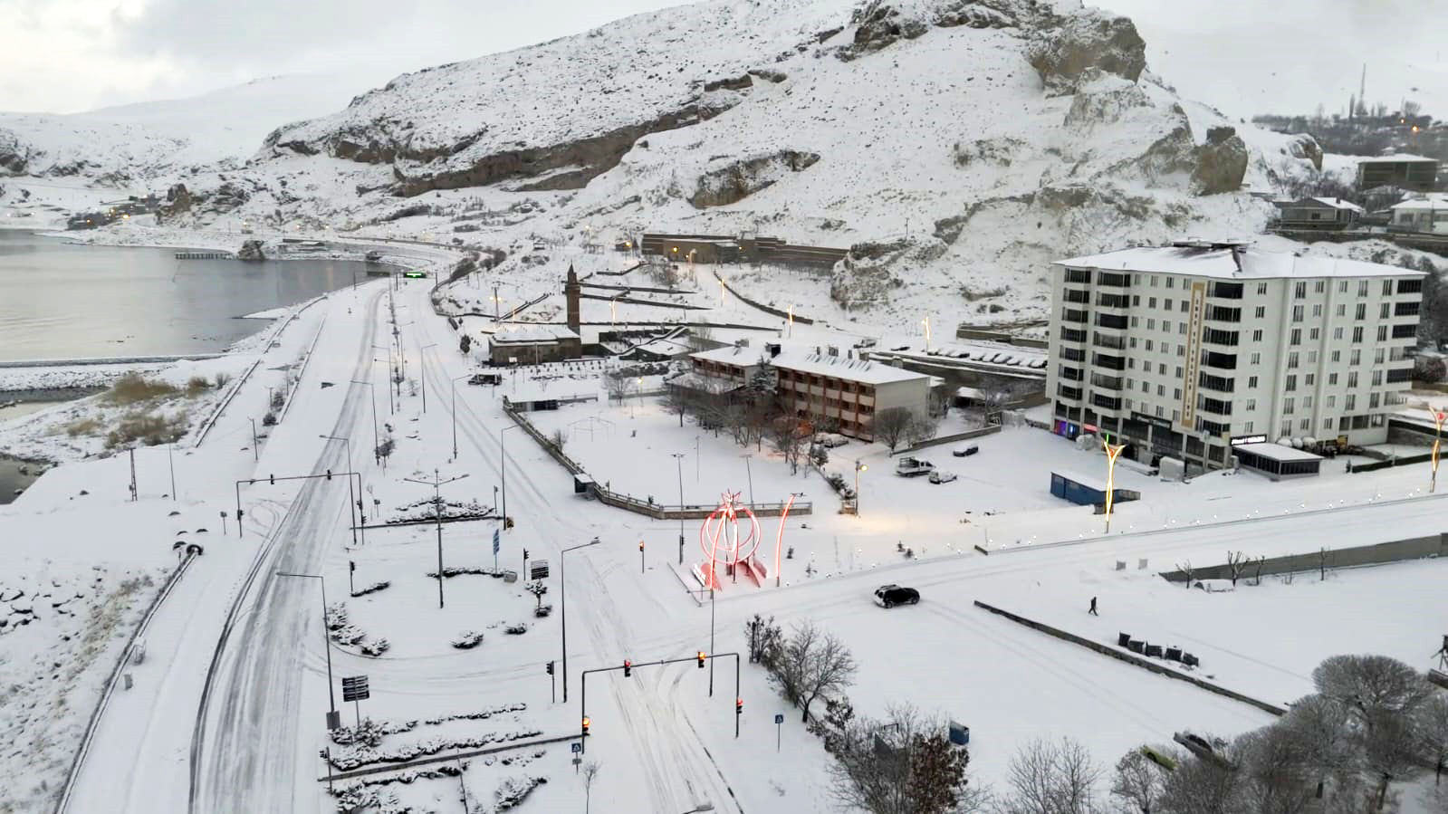 İlçenin cadde ve sokaklarını aydınlatan modern ışıklandırmalar, gece saatlerinde kar yağışıyla birlikte görsel bir estetik oluştururken, beyaza bürünen Adilcevaz farklı bir güzelliğe büründü. Özellikle ilçe merkezi ve sahil kesiminde oluşan manzaralar, izleyenlere kartpostalları aratmayan görüntüler sundu. Kar yağışıyla birlikte oluşan bu eşsiz görüntüler, havadan dron ile kaydedildi.