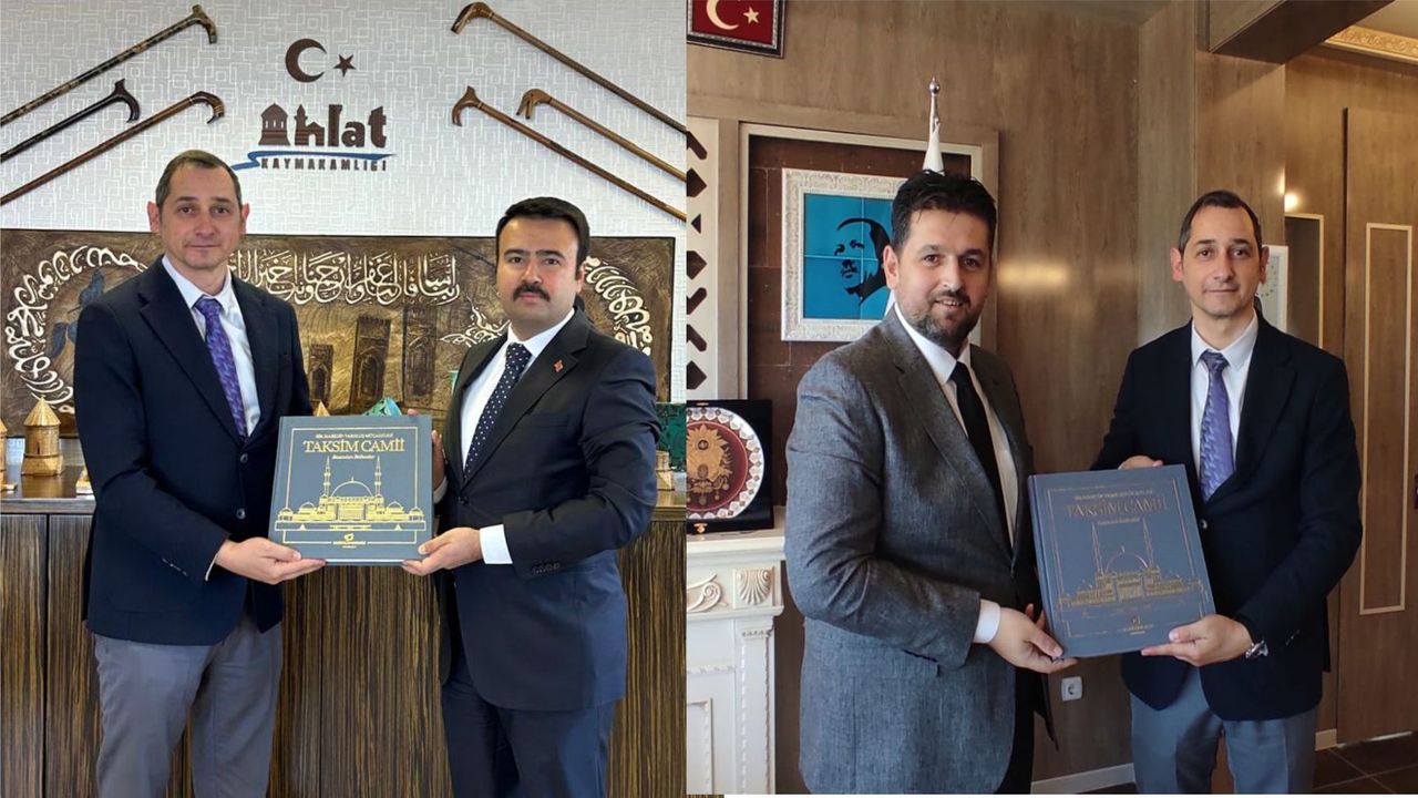 Çeşitli temas ve ziyaretler için Ahlat ilçesine gelen Basın İlan Kurumu (BİK) Van Bölge Müdürü Arda Aşkın, ziyaretleri kapsamında Ahlat Kaymakamı Batuhan Bingöl, Ahlat Belediye Başkanı Yavuz Gülmez, Ahlat Cumhuriyet Savcısı Mehmet Can Fidan ve Ahlat İcra Müdürü Yavuz Acar’ı ziyaret etti. BİK Bölge Müdürü Arda Aşkın, ziyaretleri kapsamında kurumun işleyişi hakkında bilgiler paylaşarak ziyaretleri anısına Basın İlan Kurumu yayınlarından olan Taksim’e bir cami yapılmasının 150 yıllık mücadelesinin kronolojik olarak aktarıldığı ‘Taksim Cami’ kitabından hediye etti.