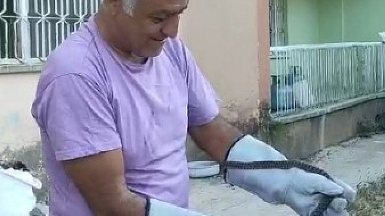 Tunceli'de bina içine giren damalı su yılanı, Doğa Koruma ve Milli Parklar ekipleri tarafından yakalanarak doğal ortamına bırakıldı.